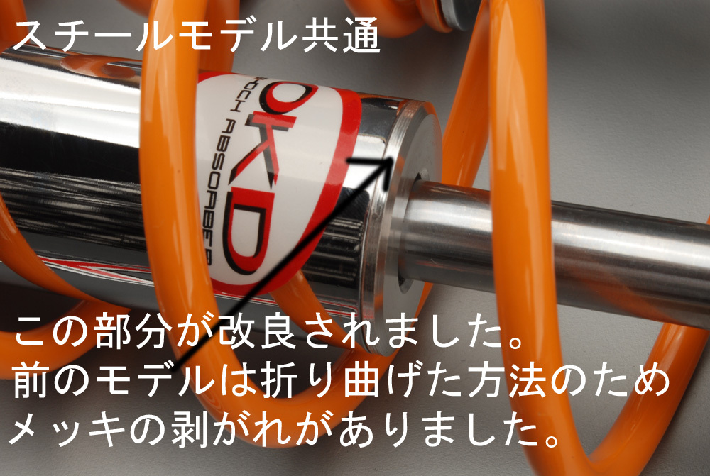 当社はOKD社から直接仕入れをしています。 ●モンキー DAX カブ用荒巻リアサスペンション OKD製リアショック こちらはスチールにメッキ仕様となります 2本セットです ロッド径:φ内径10mm 12mmのカラーも4個付属 スプリング径、約60mm 製造メーカー:OKD.(THAILAND)CO,.LTD. 生産国:タイ 軸間は多少前後しますのでご了承ください