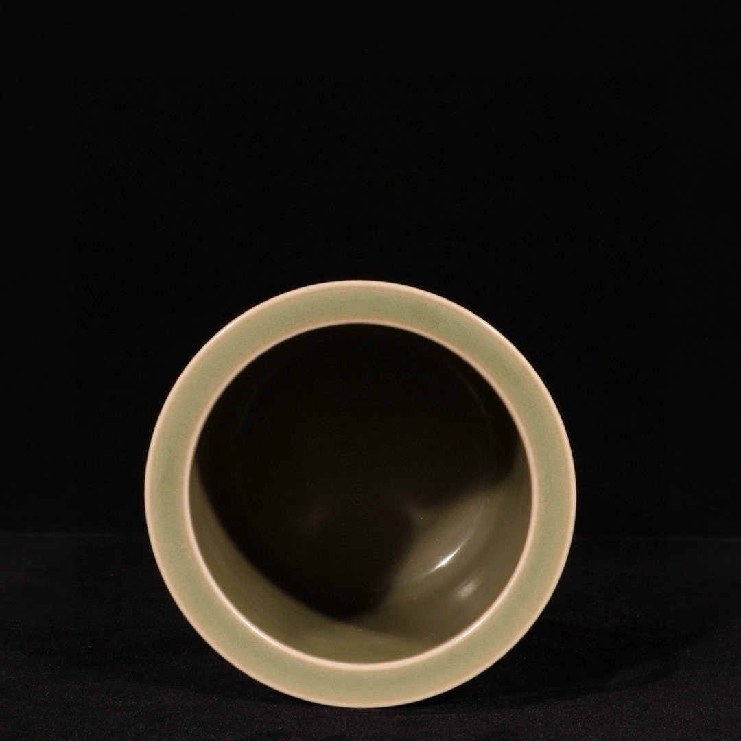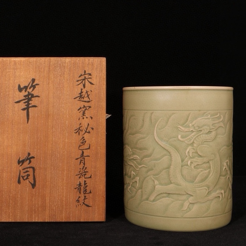 宋時代 越窯 秘色青磁 龍紋筆立て 共箱付き 高さ14 cm 直径11.5 cm 中国骨董 珍品旧蔵 古賞物 時代物 808 收藏