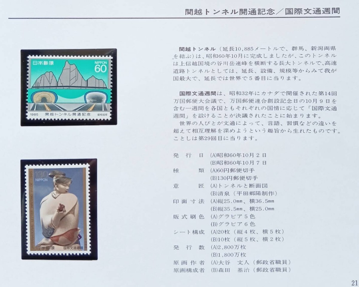 【額面出品】1985 S60 国際文通週間/関越トンネル開通記念 收藏