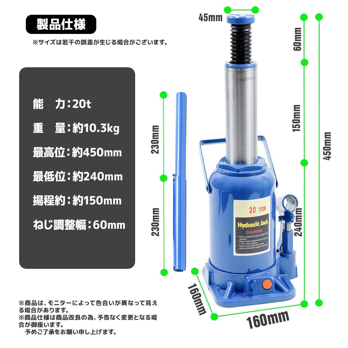 油圧ジャッキ 標準型 ボトルジャッキ 20Tダルマジャッキ タイヤ交換 赤色/青色選択 即納!! 收藏
