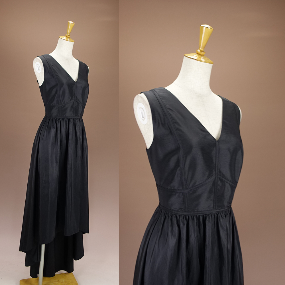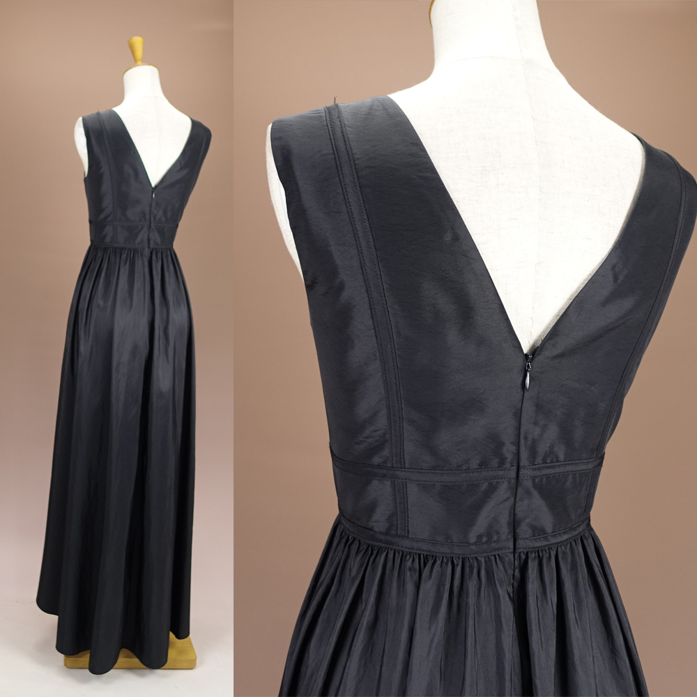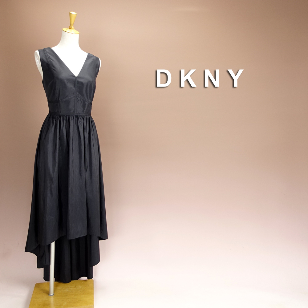 送料230円 新品DKNY 14/19号から21号 ダナキャラン 黒 Vネック フレアギャザー ロング ワンピース パーティドレス 大きいサイズ 凛37N2102 收藏