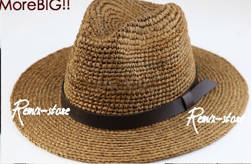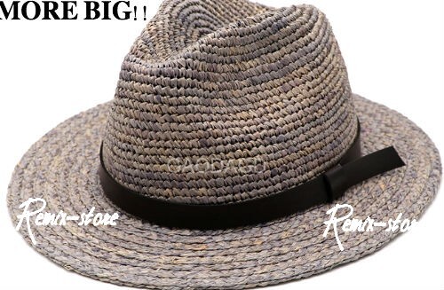 ★61cm 高級ラフィア ツバ広 中折れ ミックス ストローハット ブラウン メンズ 大きいサイズ 麦わら帽子 紫外線防止 アウトドア★新品237 收藏