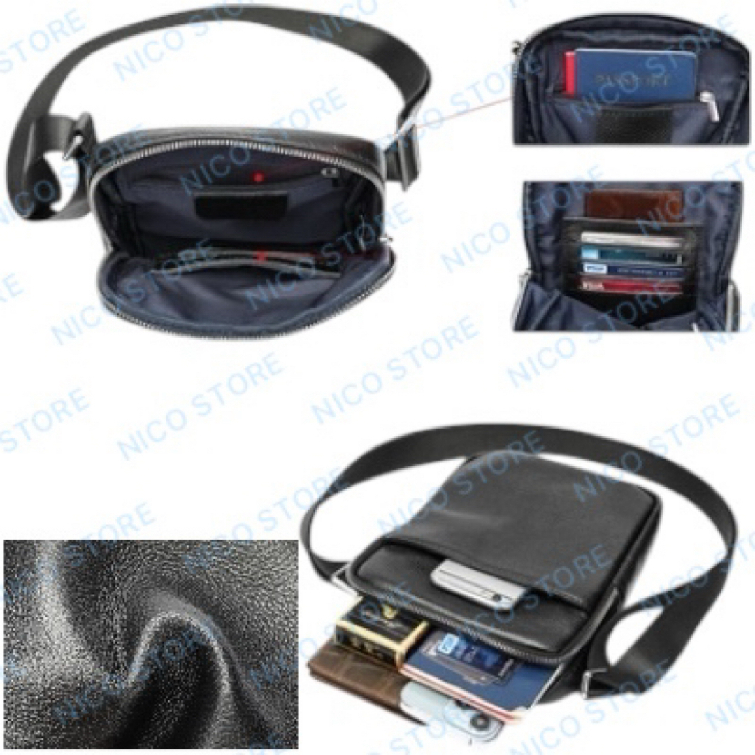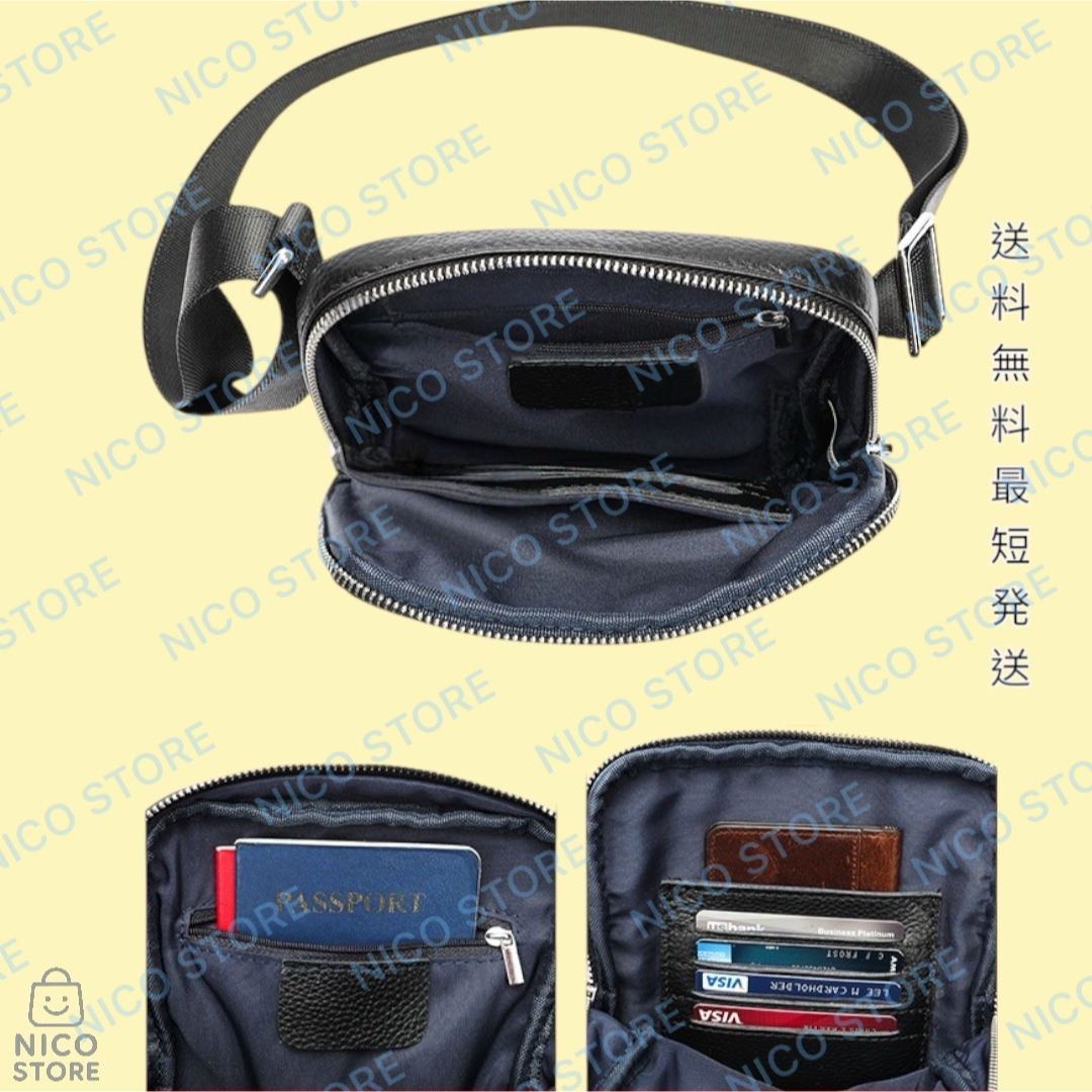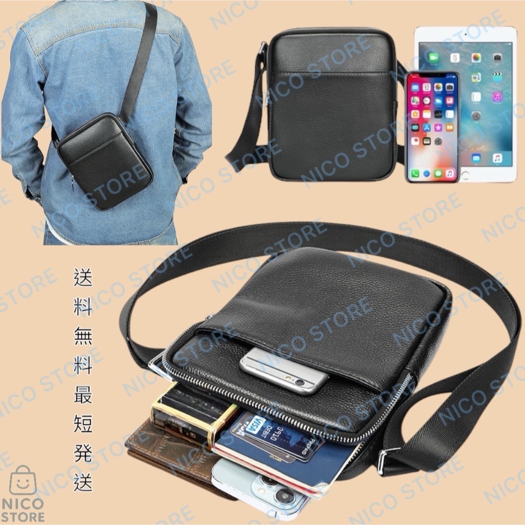本革 牛革 ショルダーバッグ 斜めがけ 肩掛け ショルダー メンズ ビジネス ボディバック 上質 高品質 軽量 黒色 新品 送料無料 最短発送 收藏