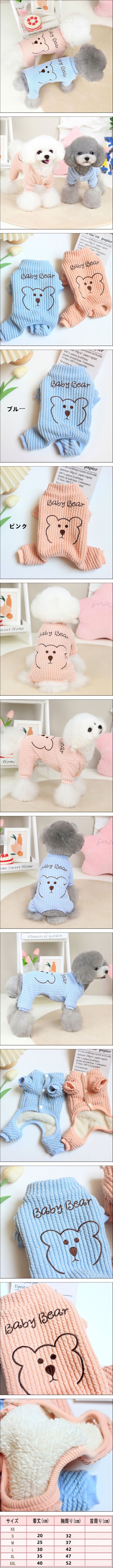 | 商品名 犬の服 四足前開き 裏地起毛 クマ BABY BEAR ロンパース つなぎ 秋冬用 防寒 コスチューム ペット用品 ドッグウェア おしゃれ ワンちゃん服 商品コード: STdg205 カラー: ブルー、ピンク サイズ: S、M、L、XL、XXL ※ご購入の際は、取引ナビより必ず商品 カラー、サイズ をご指定下さい。 商品について ※ 海外製品の為、若干の縫製の荒さ、糸くず等が見受けられます。検品は行っておりますが、稀に見逃して発送してしまう場合が御座います。商品に著しく影響を与えない場合は返品対象とはなりませんので、予めご了承願います。 ※ 運送や配送等で、表面に若干のスレや汚れ、キズがある場合がございますが、ご利用には支障がないかと思いますので、予めご了承お願いします。 ※ PC・環境・光の具合等により、色のイメージが画像と若干異なる場合が御座います。 ※ 平置き採寸となりますので、多少の誤差についてはご容赦下さい。 返品について ※ 不良品以外は交換、返品はできません。 犬服については衛生上の問題で、ワンちゃんに一度でも着せた洋服は返品、交換することができません。予めご了承ください。 | |||