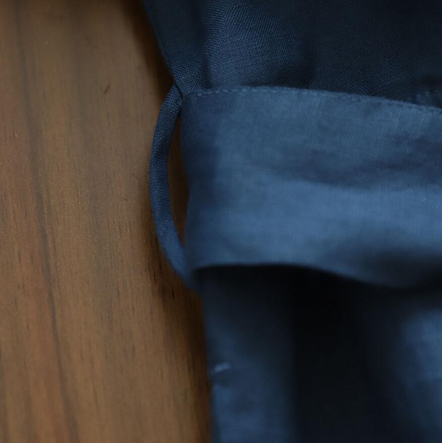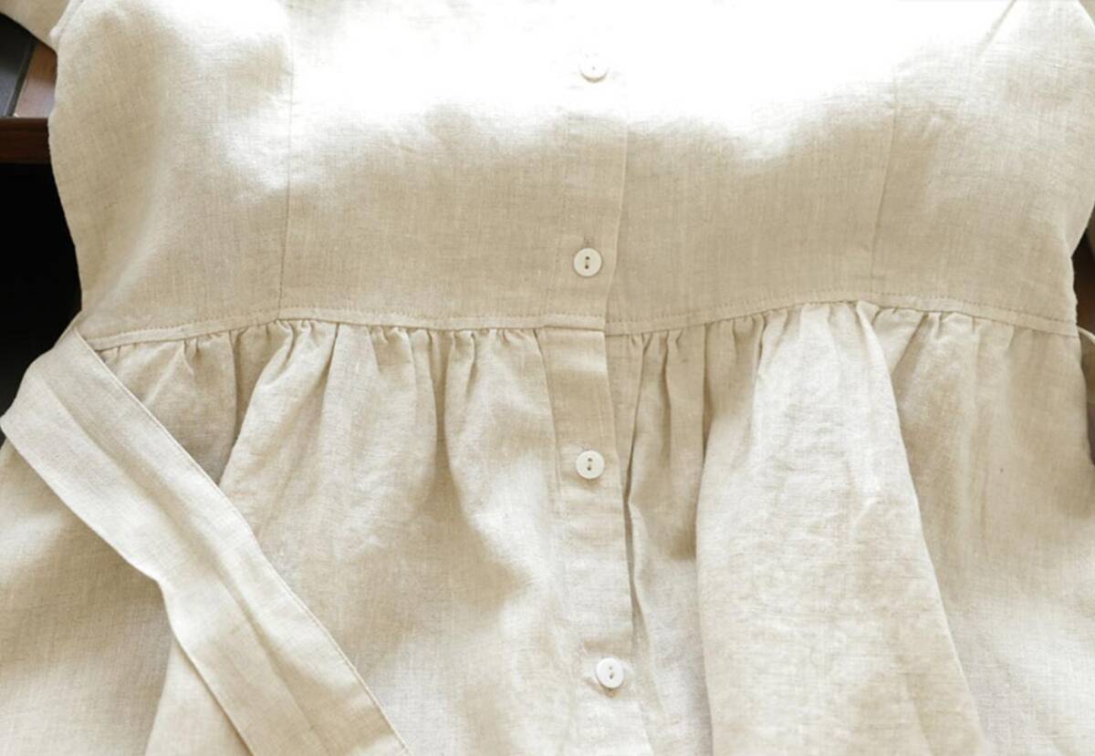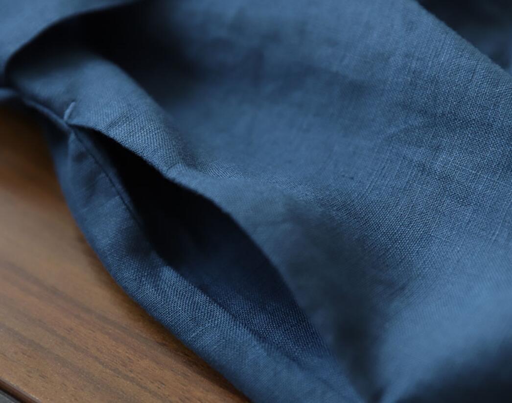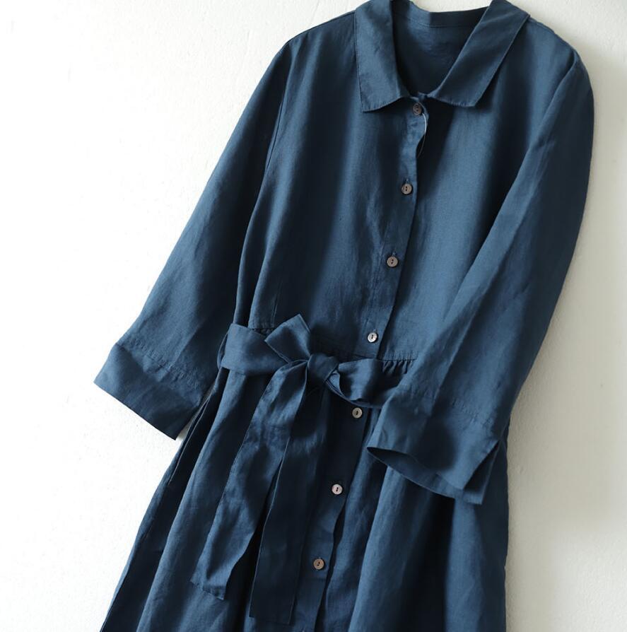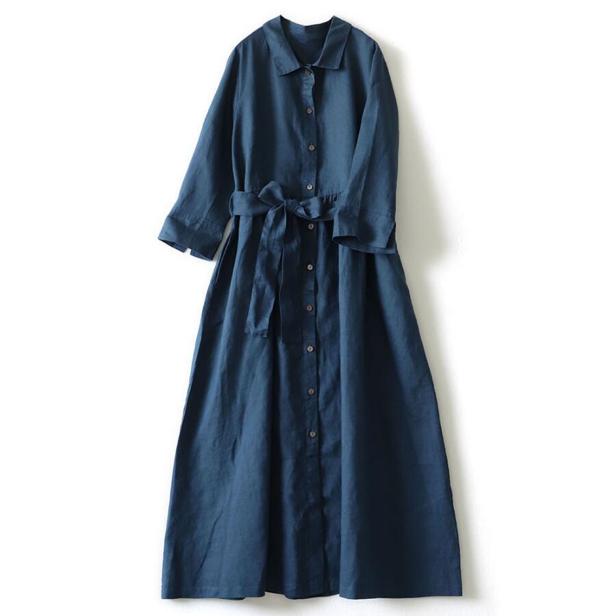 新入荷 * 上質 ロングワンピース リネン 綿麻 長袖 大きいサイズ カジュアル 襟付き 開襟 大人 無地 マキシ丈 シャツワンピース * ネイビー 收藏