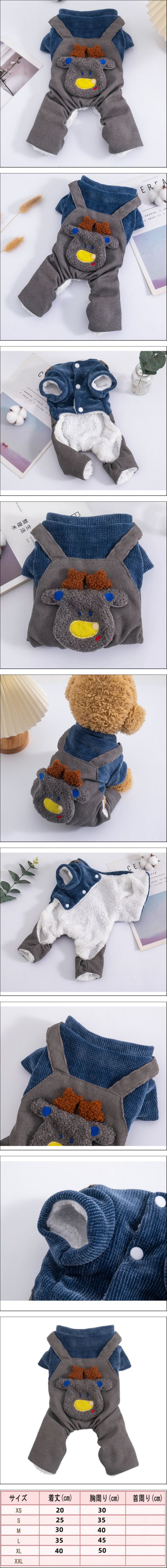 犬服 オールインワン ロンパース つなぎ 裏地起毛 厚手 防寒 柔らかい 四足前開き サロペット おしゃれ 着ぐるみ お散歩用 小型犬 中型犬 收藏