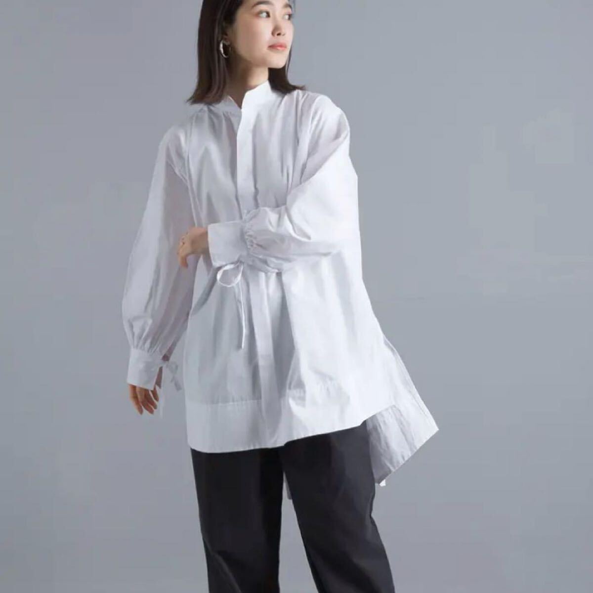 【送料無料】OMNES オムネス★タイプライター袖リボンビッグシャツ ホワイト 白 收藏