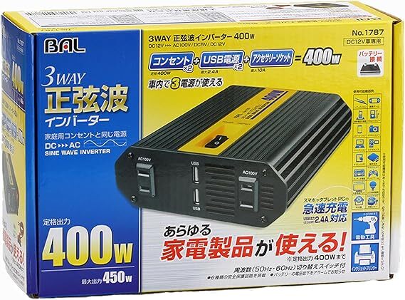 n_BAL(大橋産業) 3WAY正弦波インバーター 400W No1787 家電製品を車内で使用 電気ポット 薄型テレビ 收藏