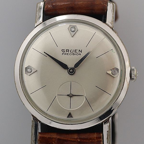 デッドストック級 稼働 良品 グリュエン スモセコ シルバー文字盤 手巻 メンズ腕時計 OGH 5451ABC0011200 收藏