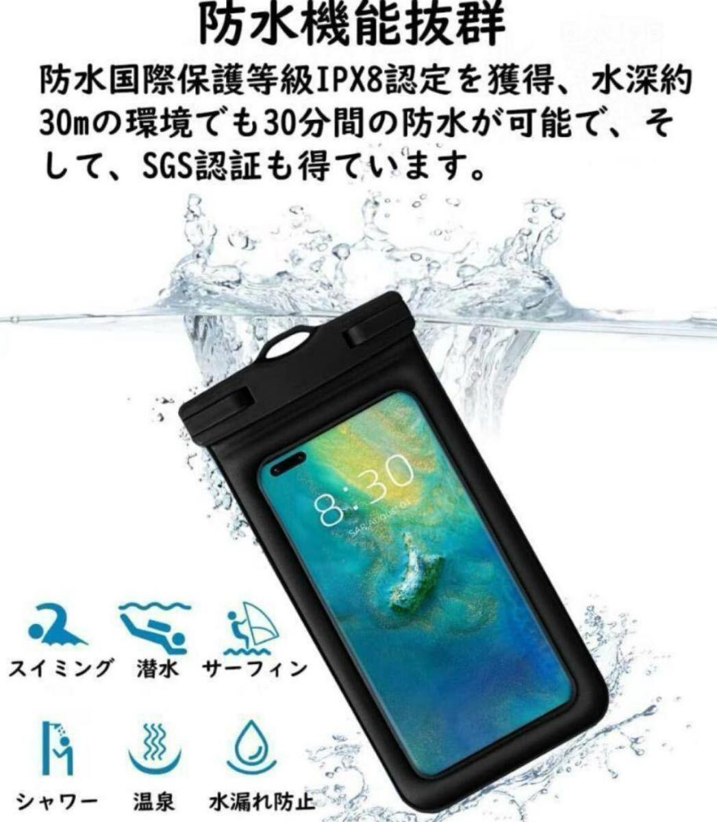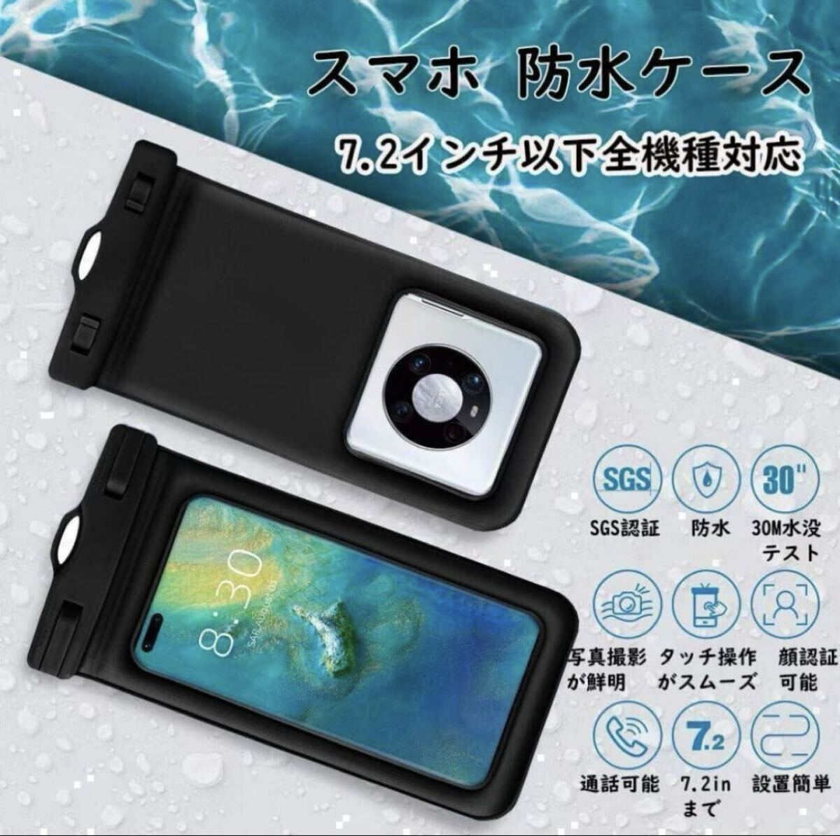 9 スマホ防水ケース IPX8防水 7.2インチ対応 顔認証 ネックストラップ付 收藏