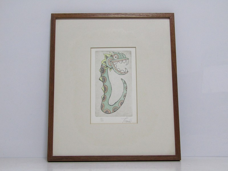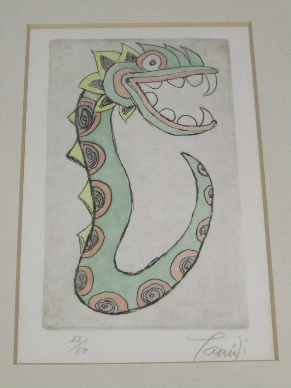 | 【真作】北川民次 エッチング 手彩色 「巳」 額装 直筆サイン エディション 日動画廊シール 銅版画 ij17-8380[GGG] | |