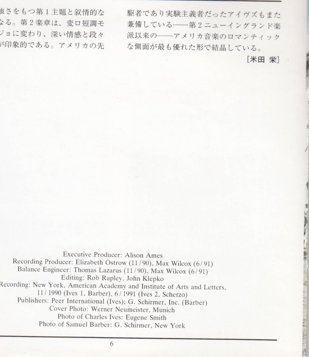 国 エマーソン弦楽四重奏団 / アイヴズ バーバー 弦楽四重奏曲集 国内盤◆規格番号■POCG-1633◆送料無料■即決●交渉有 收藏