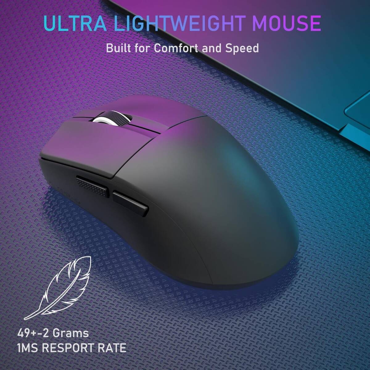 【新品未開封】ゲーミングマウス 無線 49g超軽量 ワイヤレス PAW3395センサー Bluetooth/USB接続可能 急速充電式 1000Hzレシーバー付き 收藏