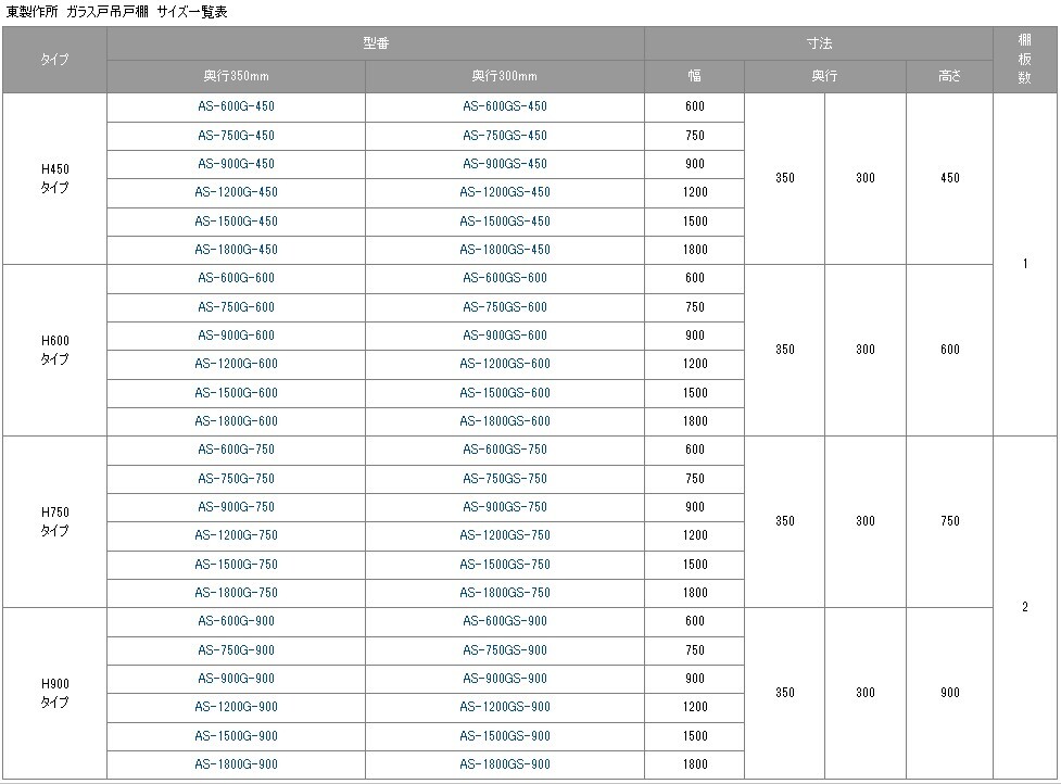 AS-1800G-450【東製作所】吊戸棚 ガラス戸 幅1800×奥行350×高さ450mm【業務用/新品/送料無料】 收藏