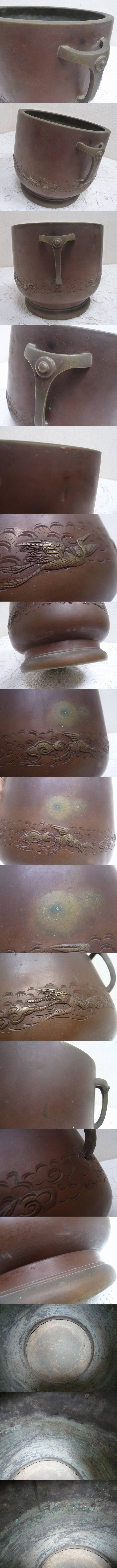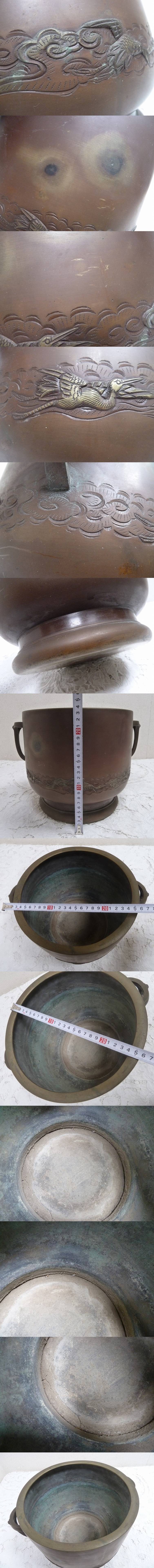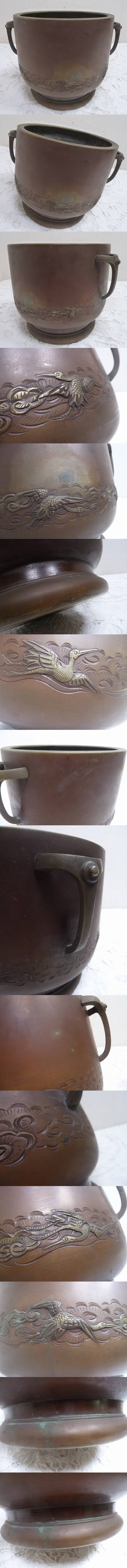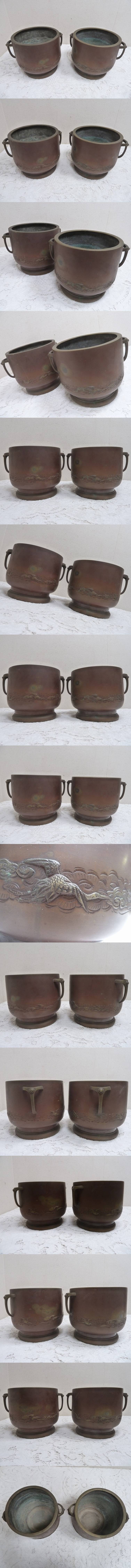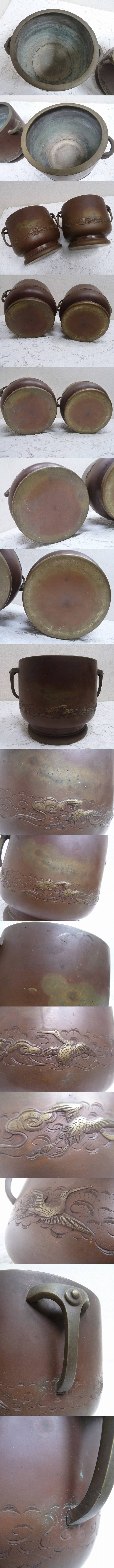 (☆BM)宣徳火鉢 鶴 共耳付き 2点 手あぶり火鉢 旧家蔵出し品 直径26㎝/4.3kg アンティーク レトロ 日本 茶道具 当時物 浮き彫り 夫婦鶴 收藏