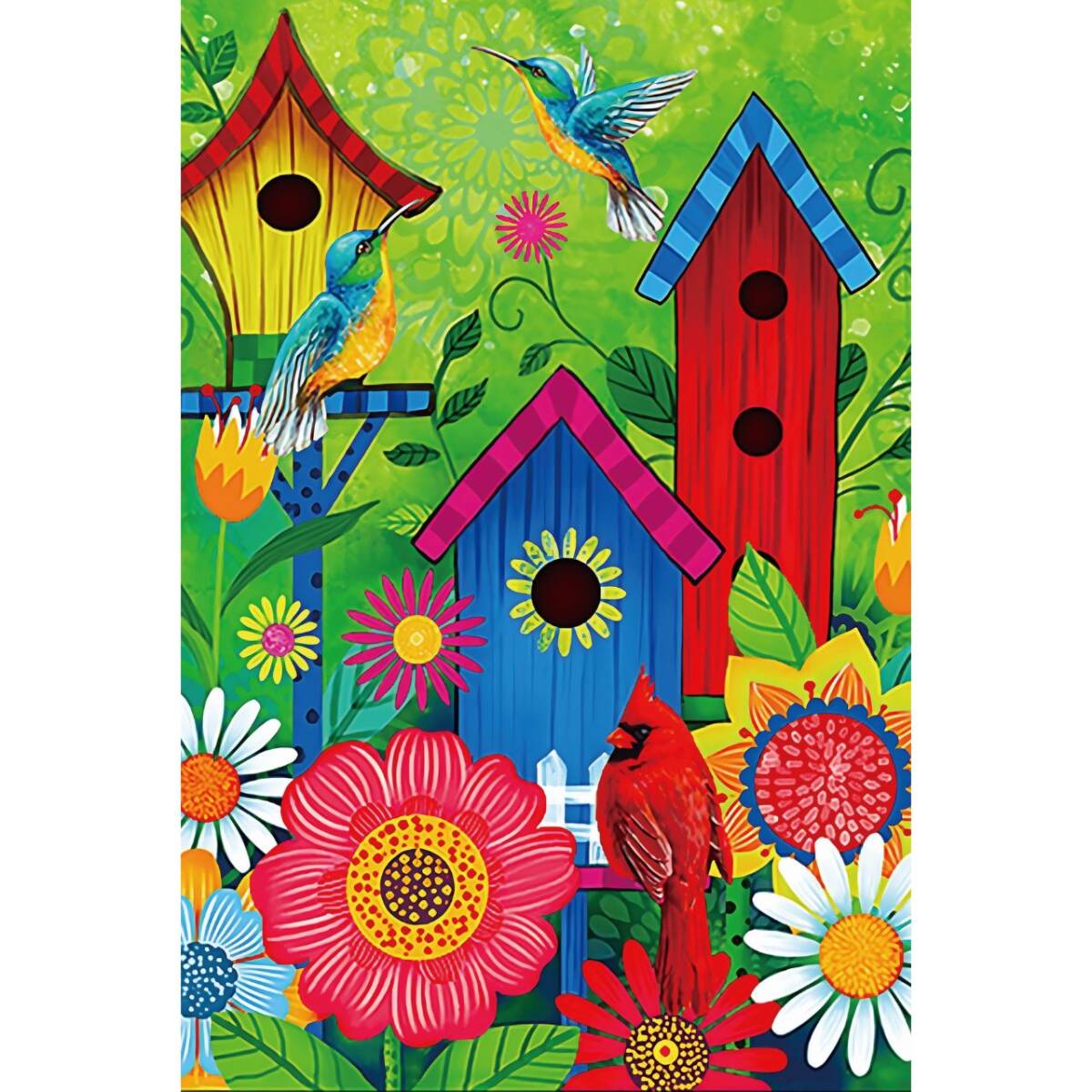 新品 バードハウスと花 ブリキ看板 カラフル ガーデン 北欧風 レトロ インテリア 壁飾り 雑貨 收藏