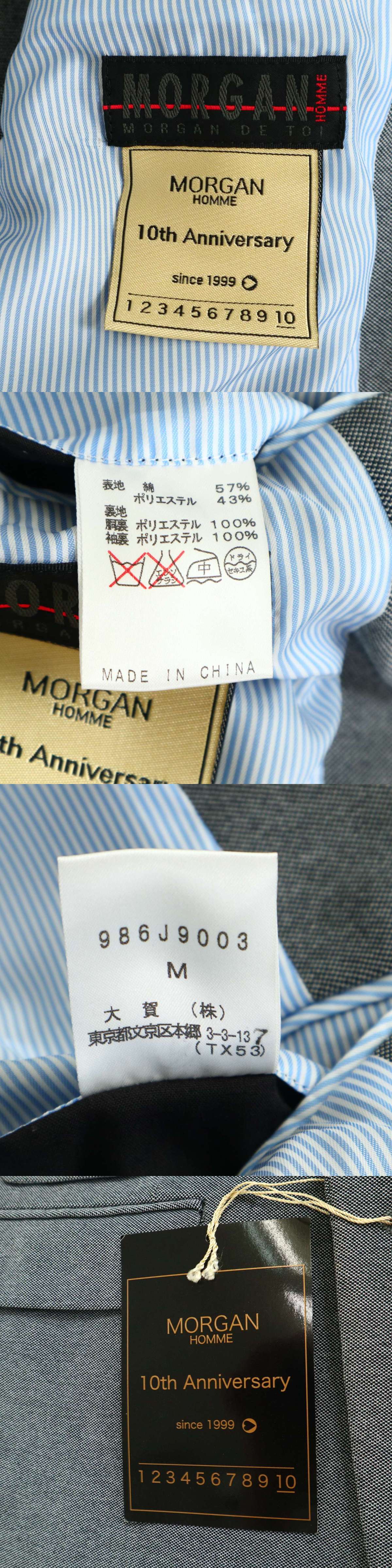 【新品 未使用】 MORGAN HOMME モルガン オム 10th Anniversary★ 通年 背抜き テーラード ジャケット Sz.M メンズ グレー 收藏
