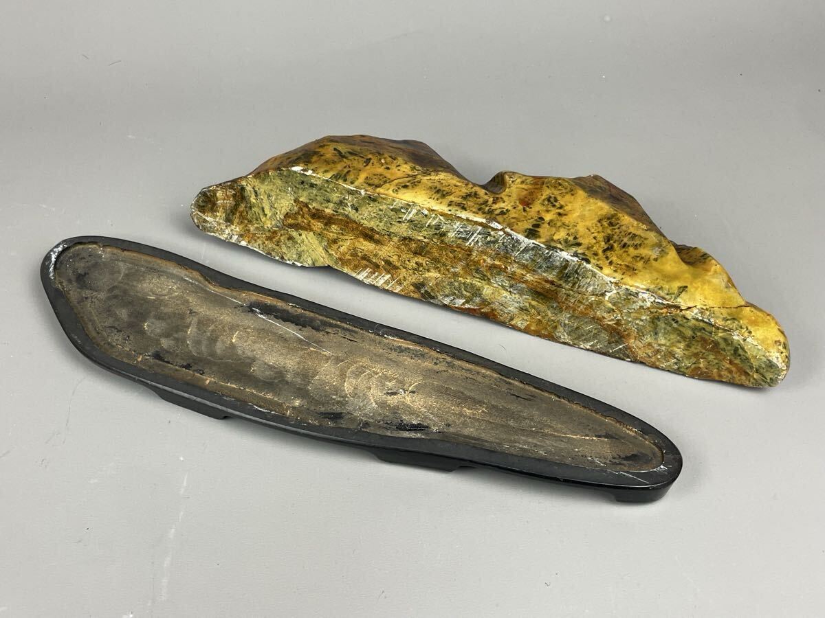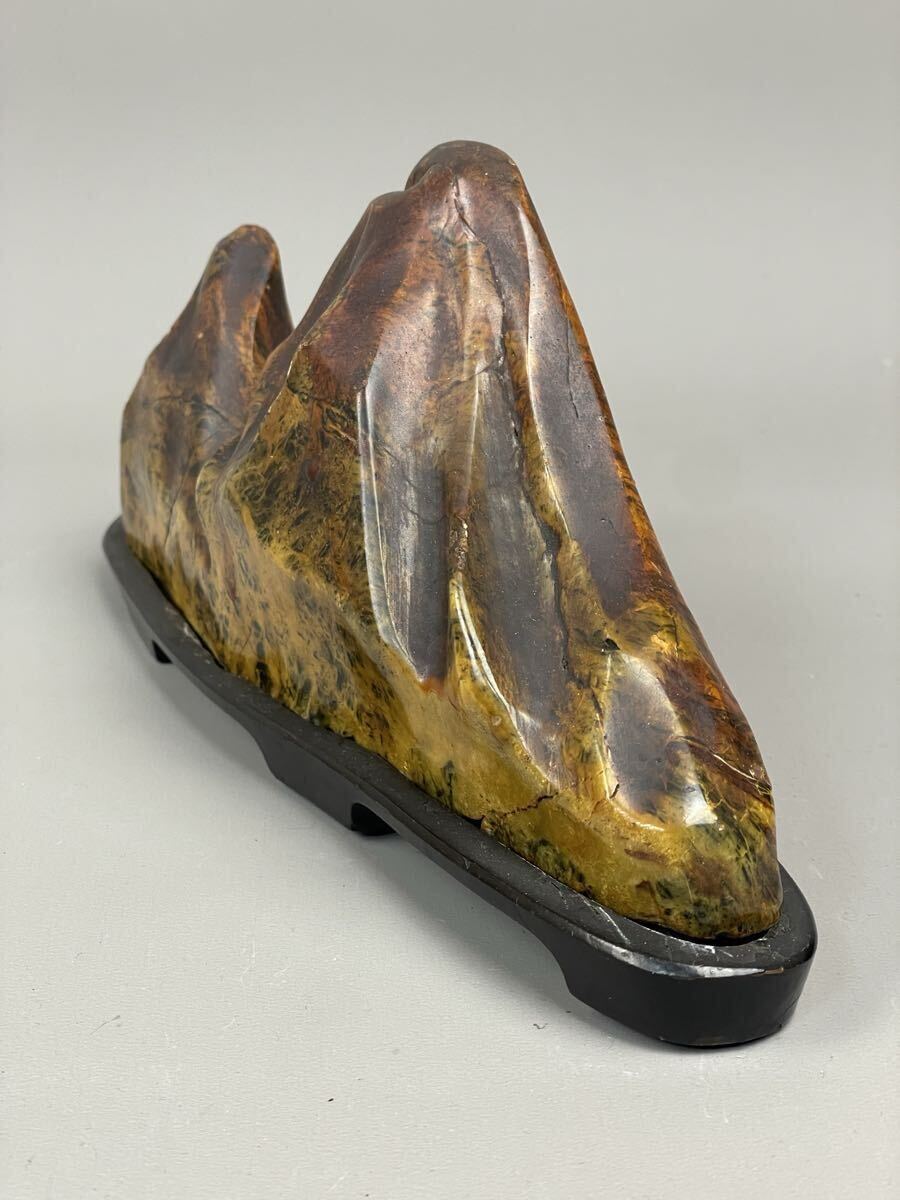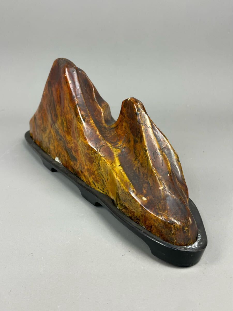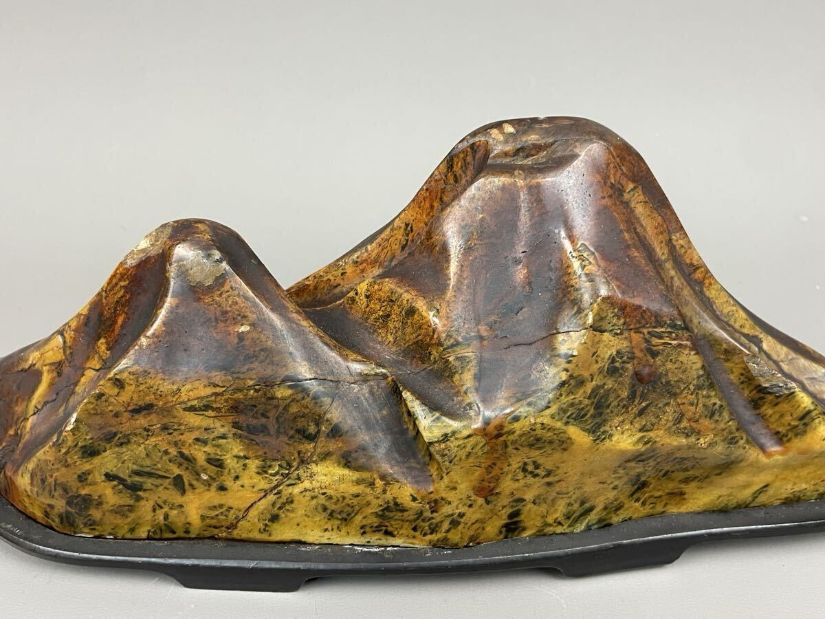 【欠あり】鑑賞石 山脈 台座付 幅約23 山型石 盆石 天然石 置物 オブジェ 飾り物 珍品 インテリア 自然石 盆石 原石 收藏