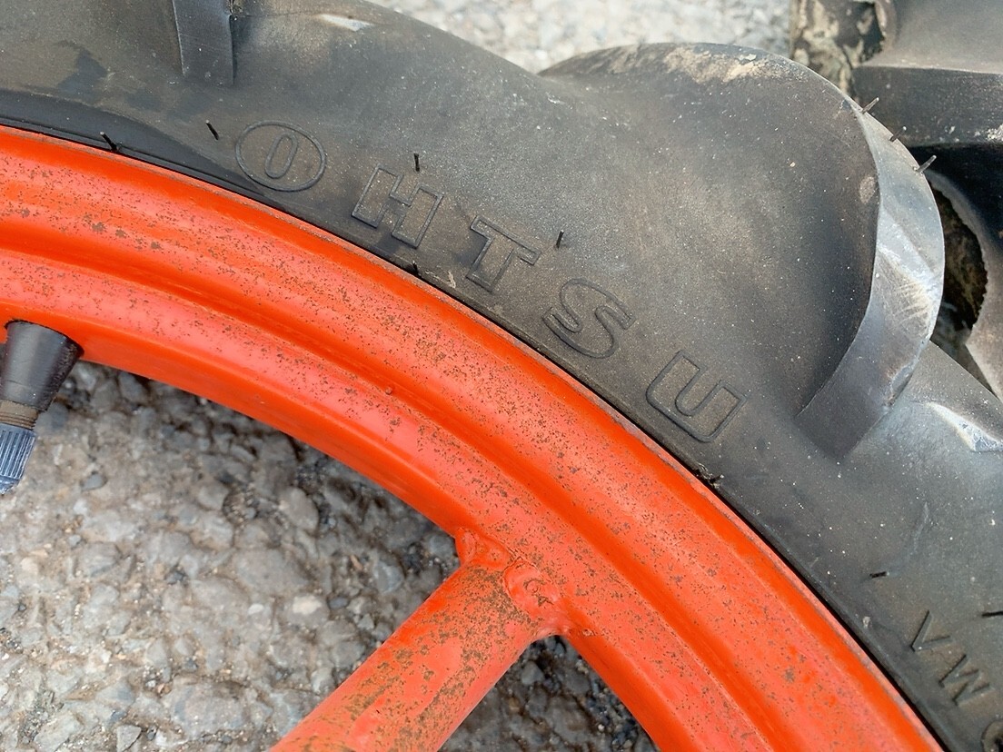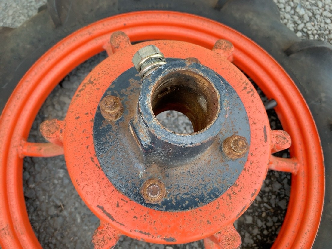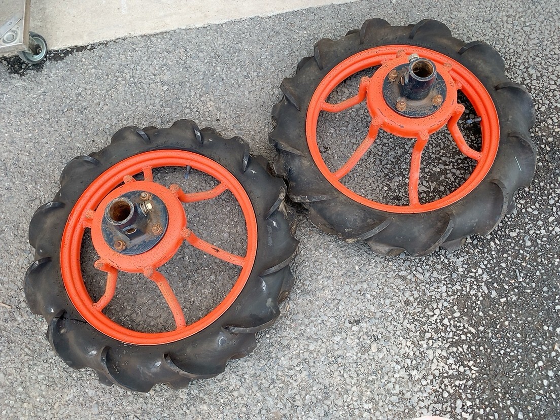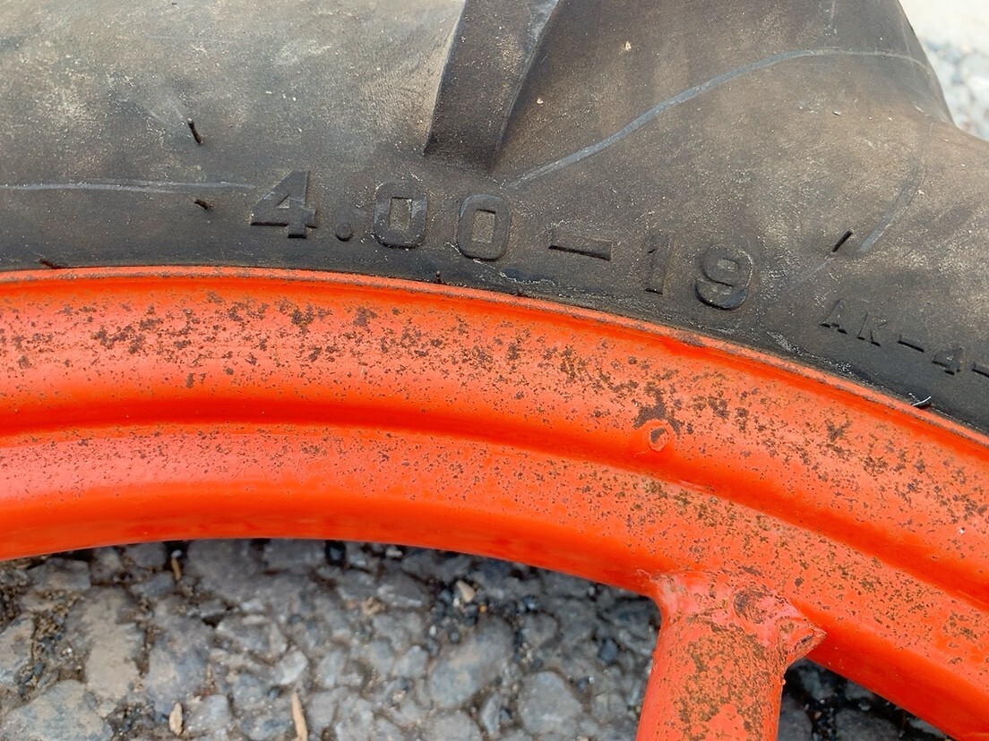 中古 OHTSU 農機具 タイヤ 4.00-19 2本セット 左右セット 2本組 丸軸 ホイール付き 耕うん機 耕運機 耕耘機 管理機 農業機械 1008や6 O 240 收藏