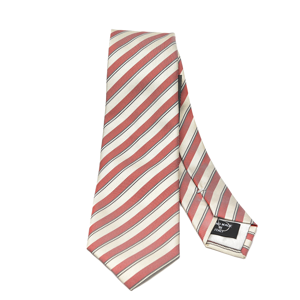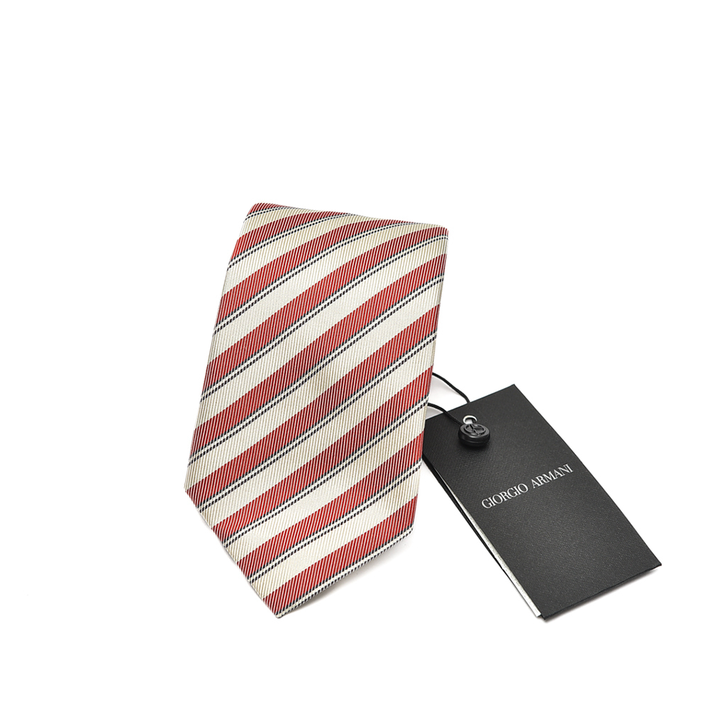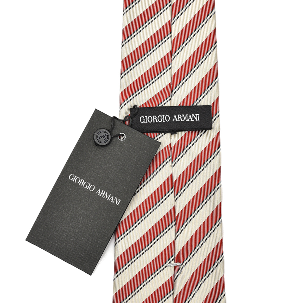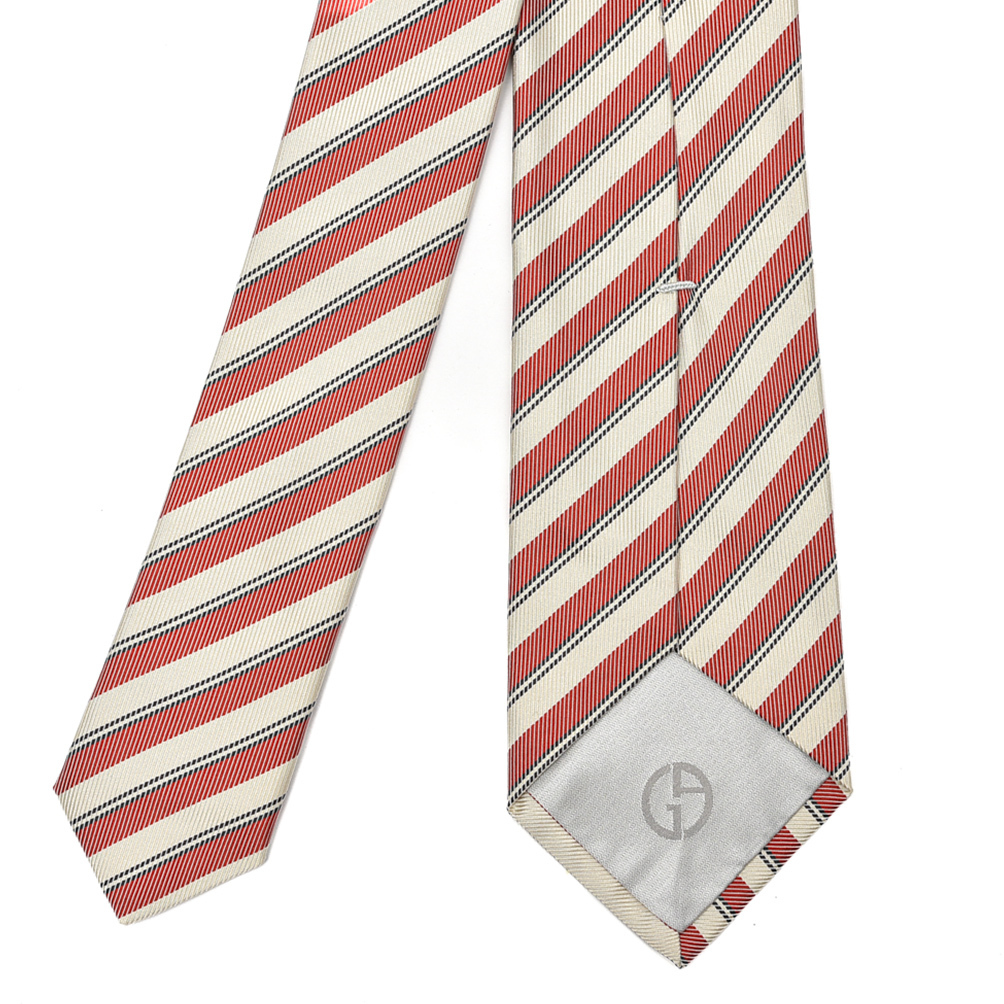 【新品・イタリア製】GIORGIO ARMANI・シルク 100%ベージュ×レッド系レジメンタル柄ネクタイ 收藏