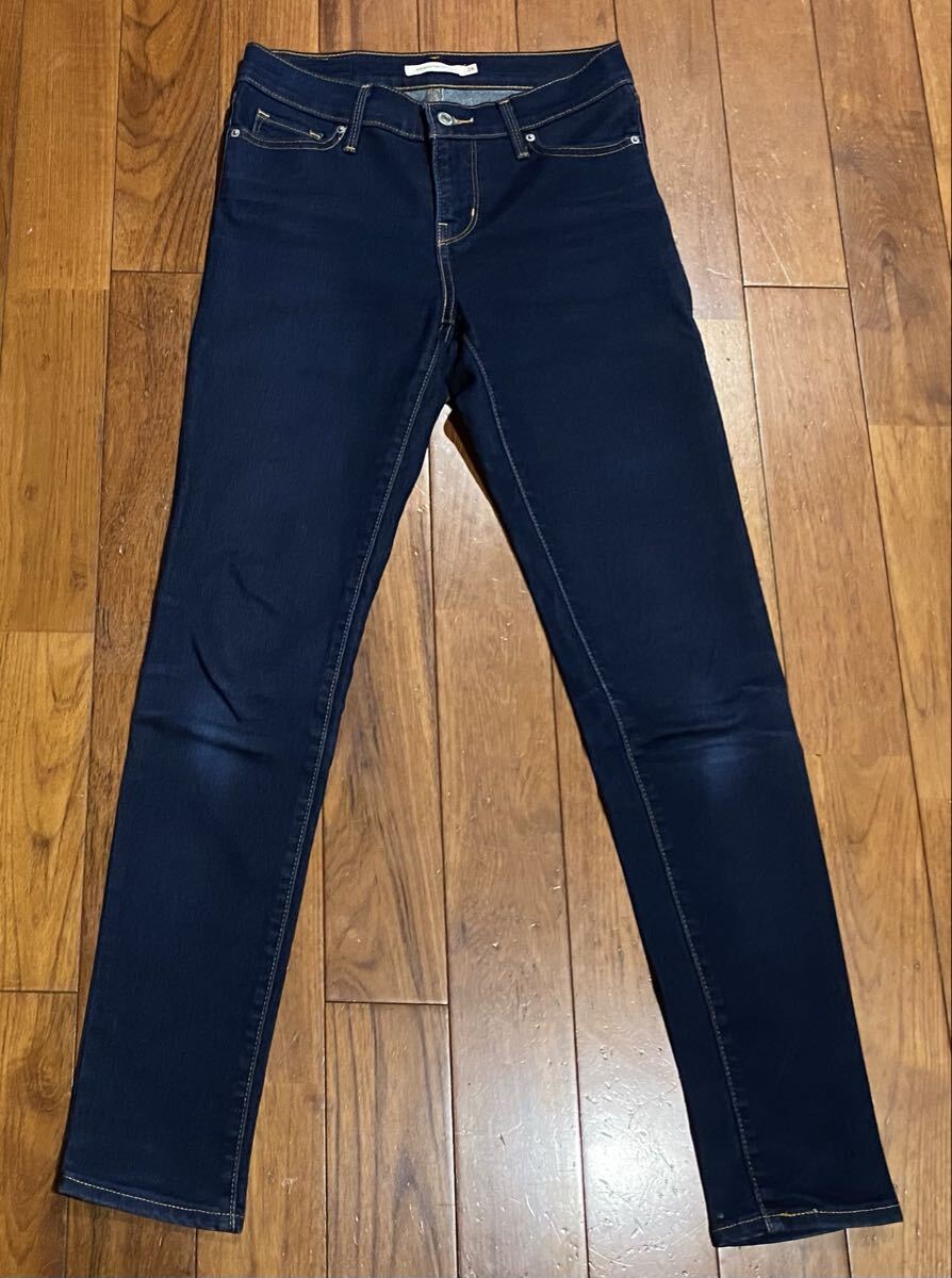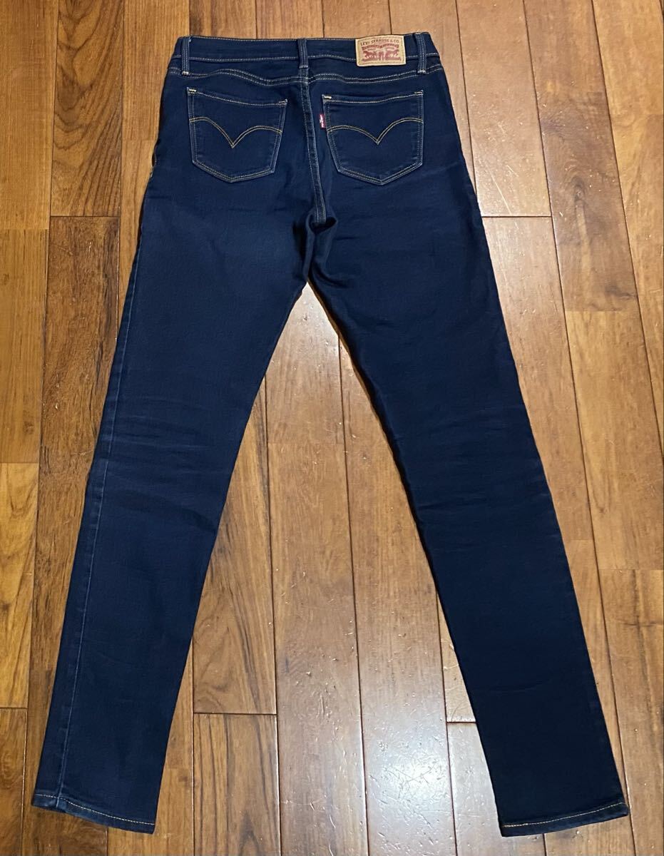 リーバイスのストレッチスキニーデニム(ジーンズ)、311 SHAPING SKINNY 19633-0006です。色はインディゴブルーです。USEDですが状態は良いです(10段階中8程度)。生地はストレッチ入りで綿81%、ポリエステル17%、ポリウレタン2%です。紙パッチ、ジッパーフライ、裾はチェーンステッチです。正規品です(中国製)。サイズはW26×L30でウエストは重ねずに平置きで約69cm、ヒップ約80cm、股上約21cm、股下約74cm、股下15cmのふともも部分約42cm、裾まわり約26cm、重量約370gです。発送はゆうパケットポストになります。