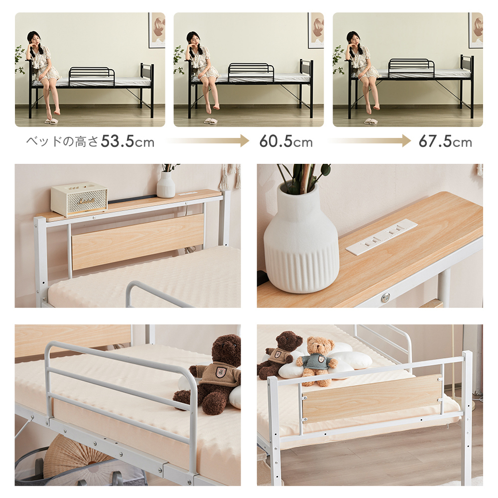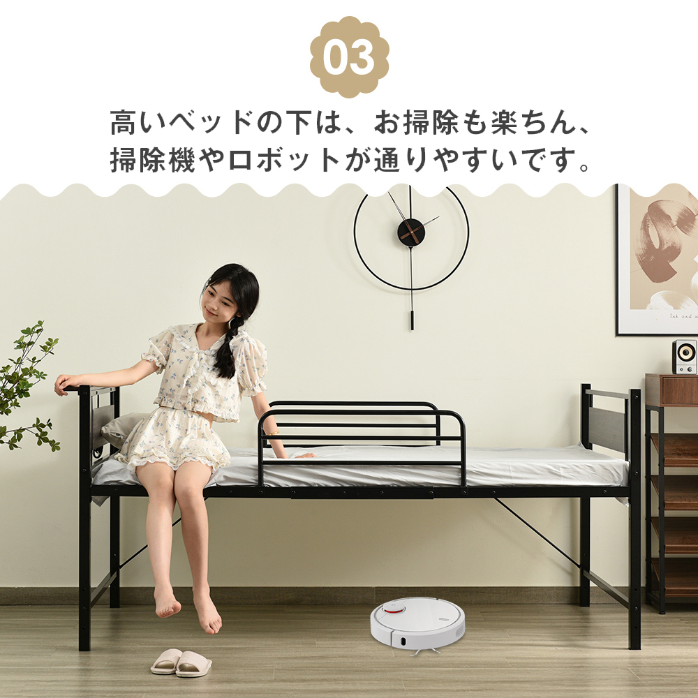 【ブラック】ロータイプベット 宮棚 ベッド シングル ロング 高さ調節 3段階 パイプ ベット スチール ベッド下 収納付きフレームベッド 收藏