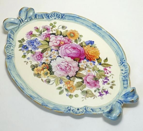イタリア製 輸入雑貨 トレー お盆 花柄 ピオニー ブルー リビングスタジオ 直輸入 アンティーク ロココ フィレンツェ ISP-2125GI 送料無料 收藏
