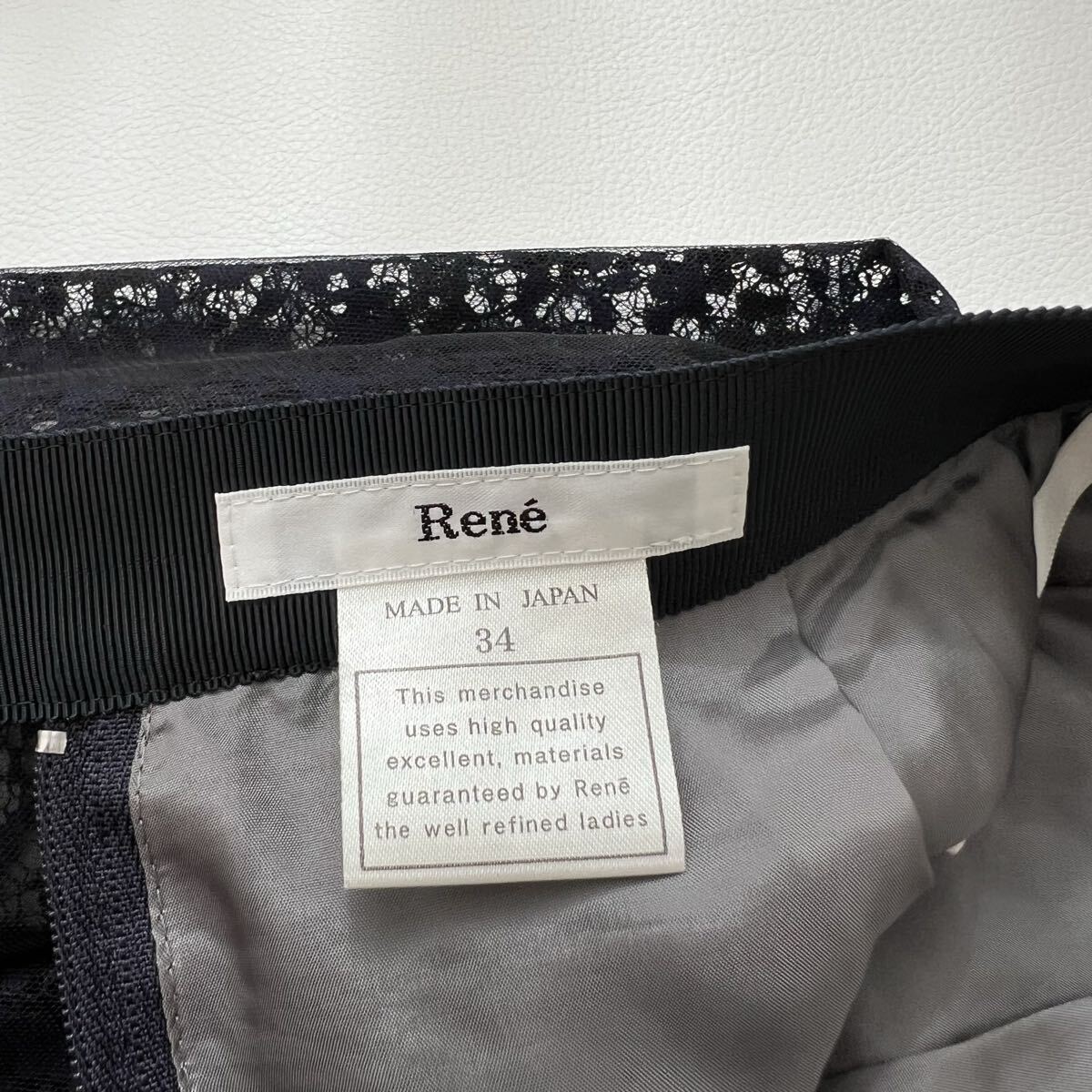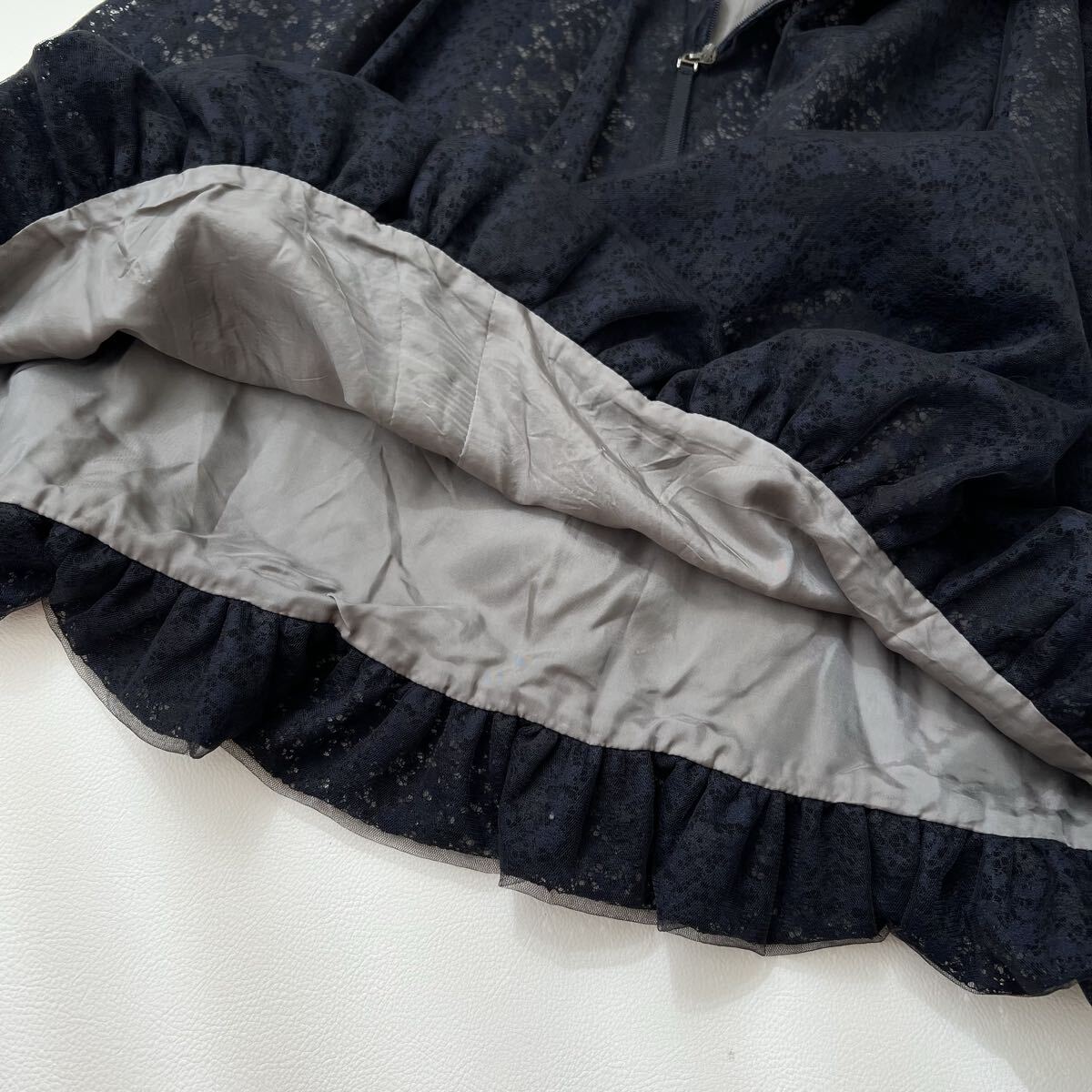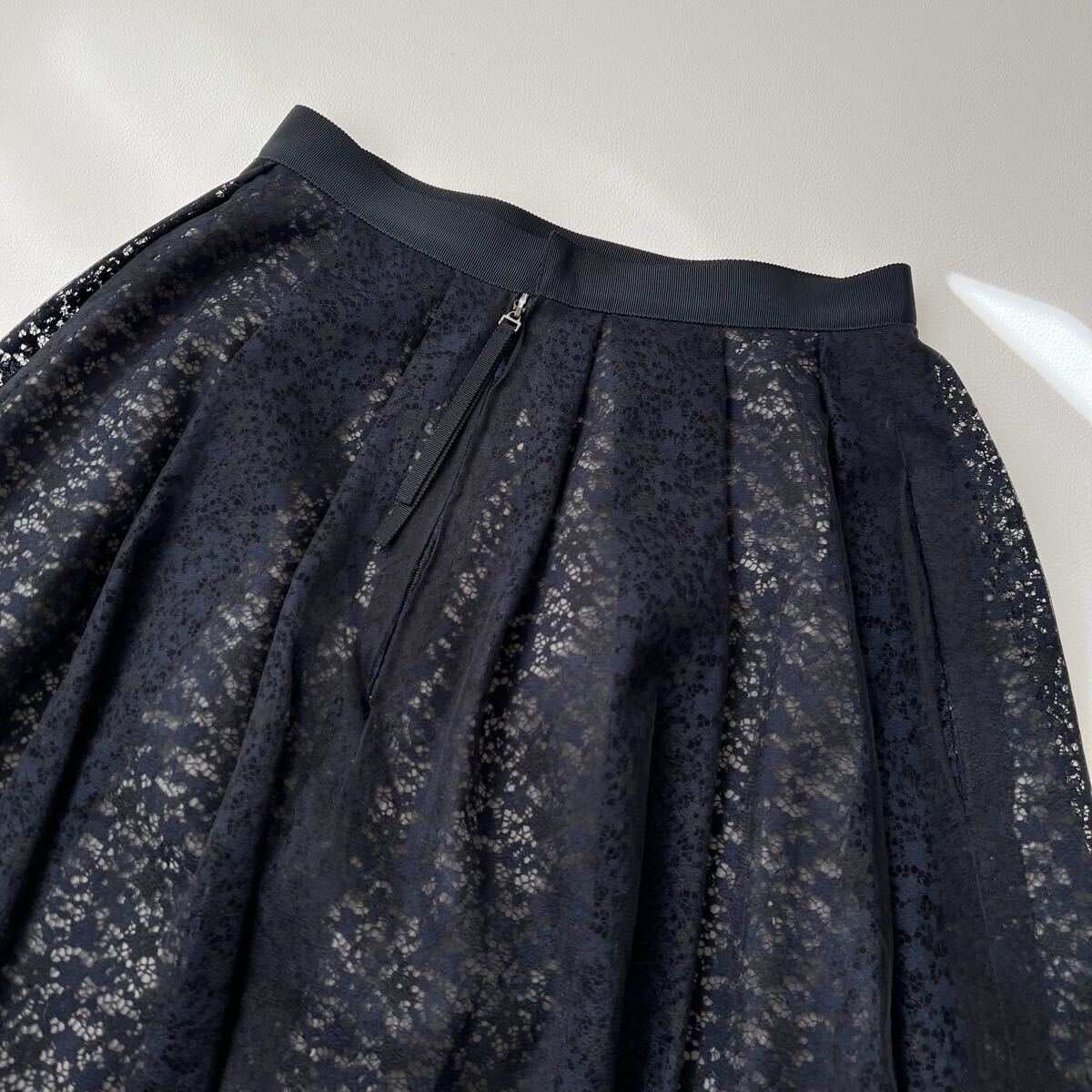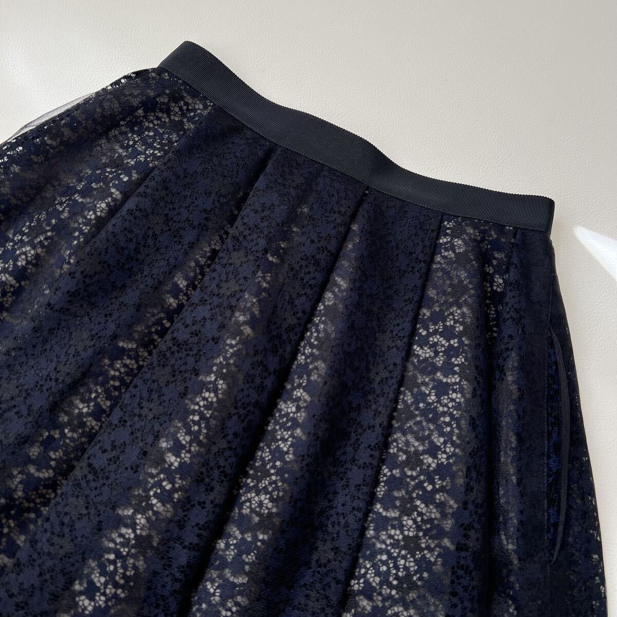 美品 Rene ルネ バルーンスカート ボックスプリーツスカート ネイビー フラワー模様 チュール レース 膝下丈 ミディ丈 34 レディース 收藏