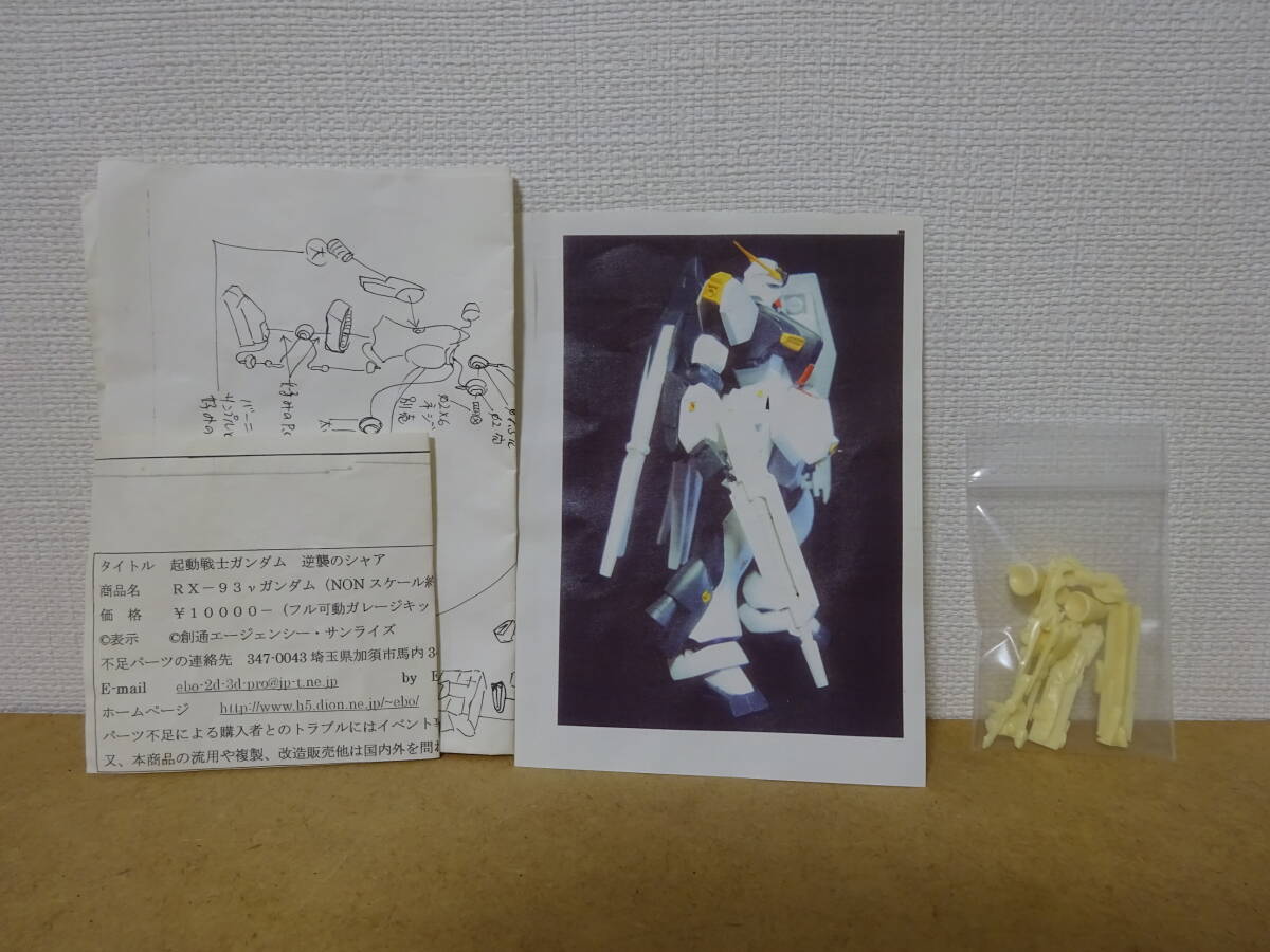 キャラホビ限定の1/144のνガンダムの正規品の中途完成品です。初期設定画のデザインで立体化された珍しいものです。バックパック、腕・足などデザインが独特です。ハンドパーツはジャンクのHGのパーツのものを使いました。固定キットです。各部は真鍮線やアルミ線で組み立てています。説明書とあまりパーツをお付けします。箱はありません。箱がもともとあったのかもわかりません。画像のものがすべてです。丁寧に工作したつもりですが、素人の製作ですので高い技術はありません。ご了承ください。このまま塗装して完成させてもよいですし、改造の素体にしてもよいです。気に入った方のご入札をお待ちしています。中途完成品のため、神経質な方のご入札はご遠慮ください。この商品は組み立て途中の「中途完成品」です。従来の完成品とは違い、製作の途中です。いわゆる「仮組」の状態です。ご了承ください。また、商品は破損を防ぐために、各パーツをバラして発送させていただきます。落札後のキャンセル、クレーム、返品等には応じられません。発送方法は、宅急便の「送料着払」のみです。海外発送はしません。終了日当日のご質問には答えられないことがありますので、ご了承下さい。 上記のことをご了承いただき、ノークレーム・ノーリターンでのお取引をお願いいたします。多数の中途完成品を出品中です。ぜひ「その他のオークション」をご覧ください。複数落札の場合は、同時梱包で送料を少なくいたします。商品についての質問がありましたら、質問欄からお問い合わせください。可能な限りお答えいたします。たくさんのご入札お待ちしております。 また、以前出品した際、新規の落札→連絡なし→繰上げ落札者に連絡ということがあり、大変迷惑しました。トラブル回避のため、新規の方の入札は取り消しますので、ご了承ください。