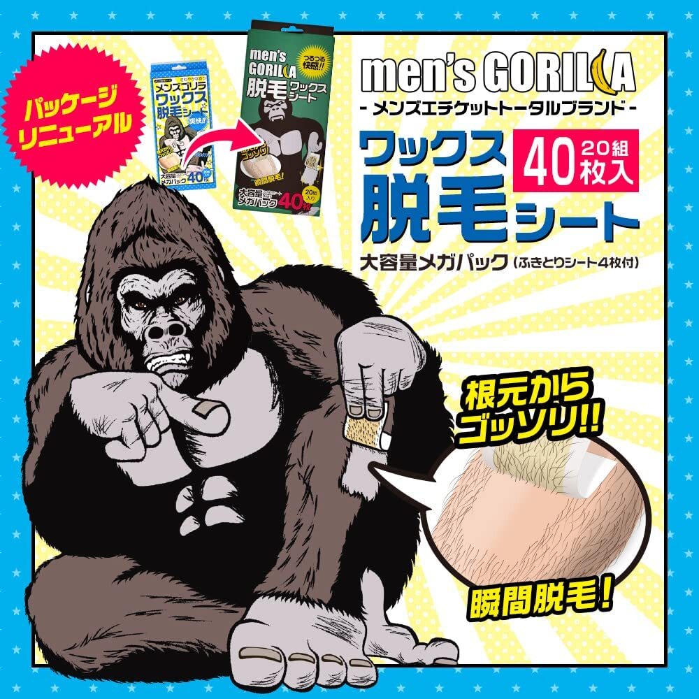 メンズゴリラ ワックス脱毛シート 大容量メガパック 20組 40枚 入り ワックス脱毛 脱毛テープ ブラジリアンワックス メンズ 顔 眉毛脱毛 除 收藏