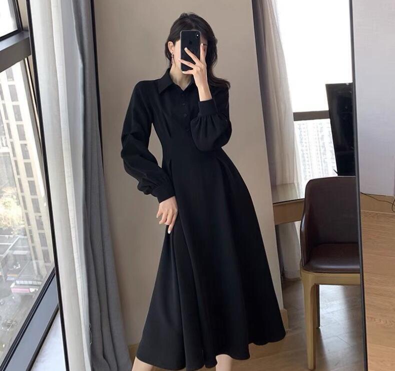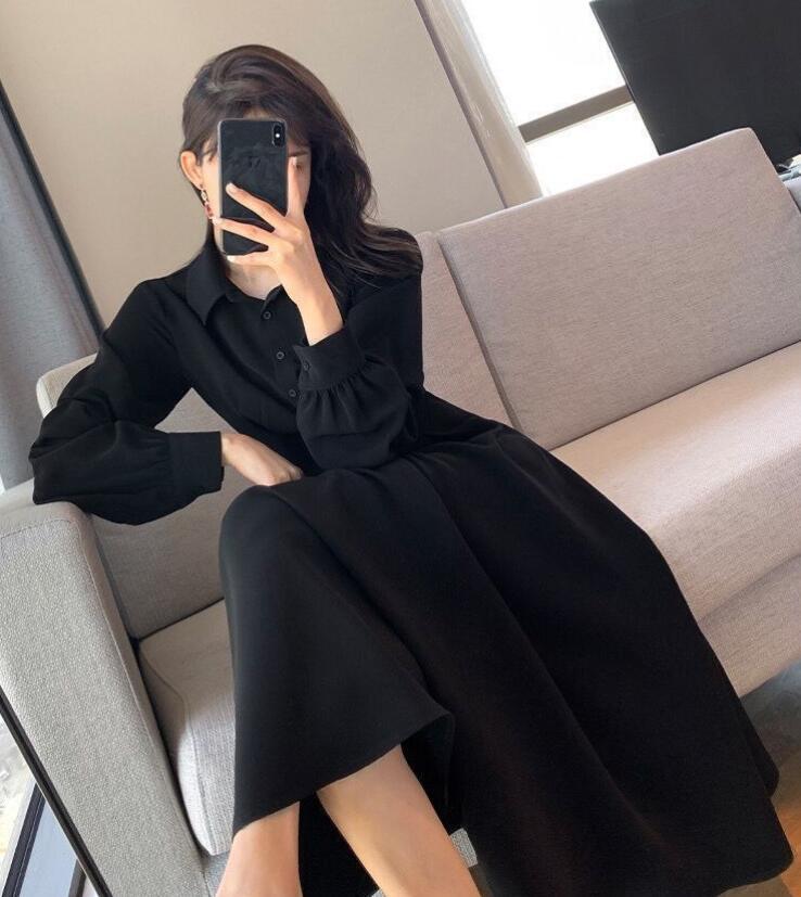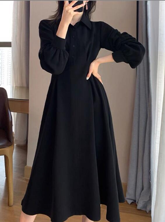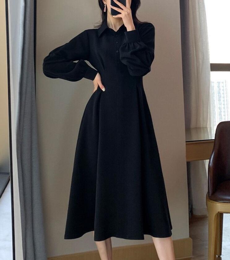 大人気新作 ワンピース 長袖 ロングワンピース POLOネック 黒ワンピ 春 秋 ロングワンピ きれいめ 無地 カジュアル ゆったり 可愛い L-5XL 收藏