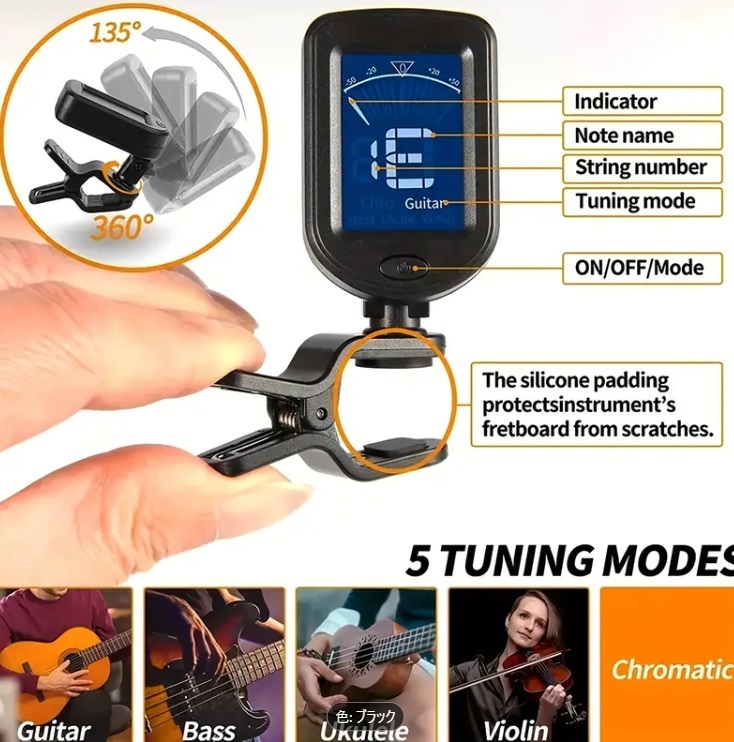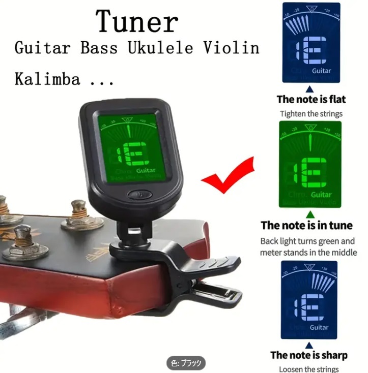 ★ギター チューナー 高精度 クリップチューナー 自動オフ 小型 黒 收藏
