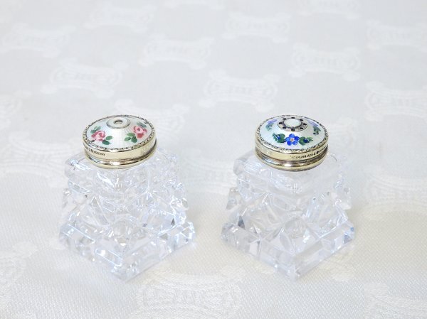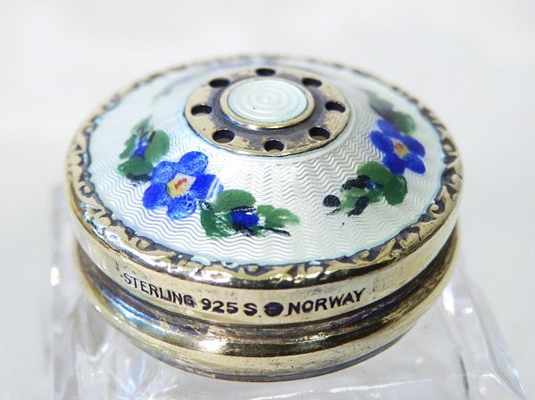 7430 希少☆ ノルウェー ソルト & ペッパー入れ セット 調味料入れ カットガラス 銀蓋 ギロッシュ七宝 スターリングシルバー 925S 收藏