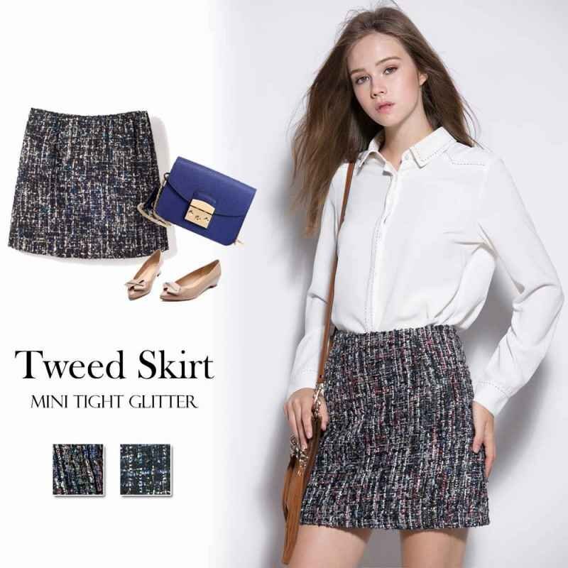 ツイード スカート 台形スカート タイトスカート ミニスカート ハイウエスト M カラフルブラック 收藏