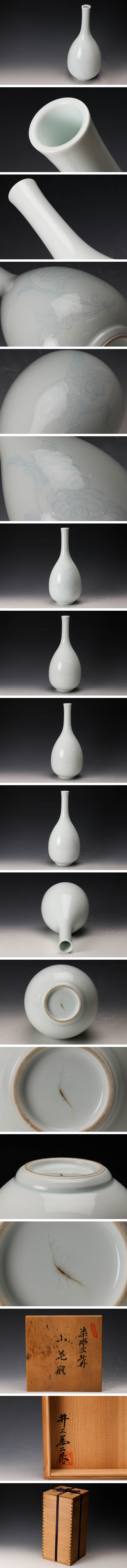 【佳香】人間国宝 井上萬二 本人作 高さ33.5cm 染彫文牡丹小花瓶 共箱 本物保証 收藏