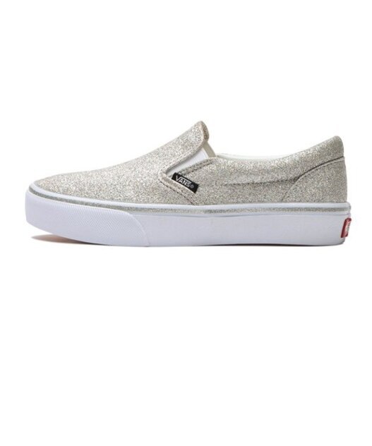 靴表面にグリッターの吹付加工を施しています。そのため摩擦や屈曲によりグリッターが剥げ落ちることがあります。