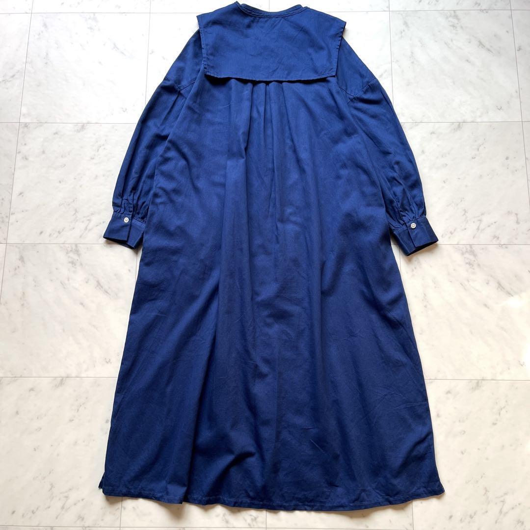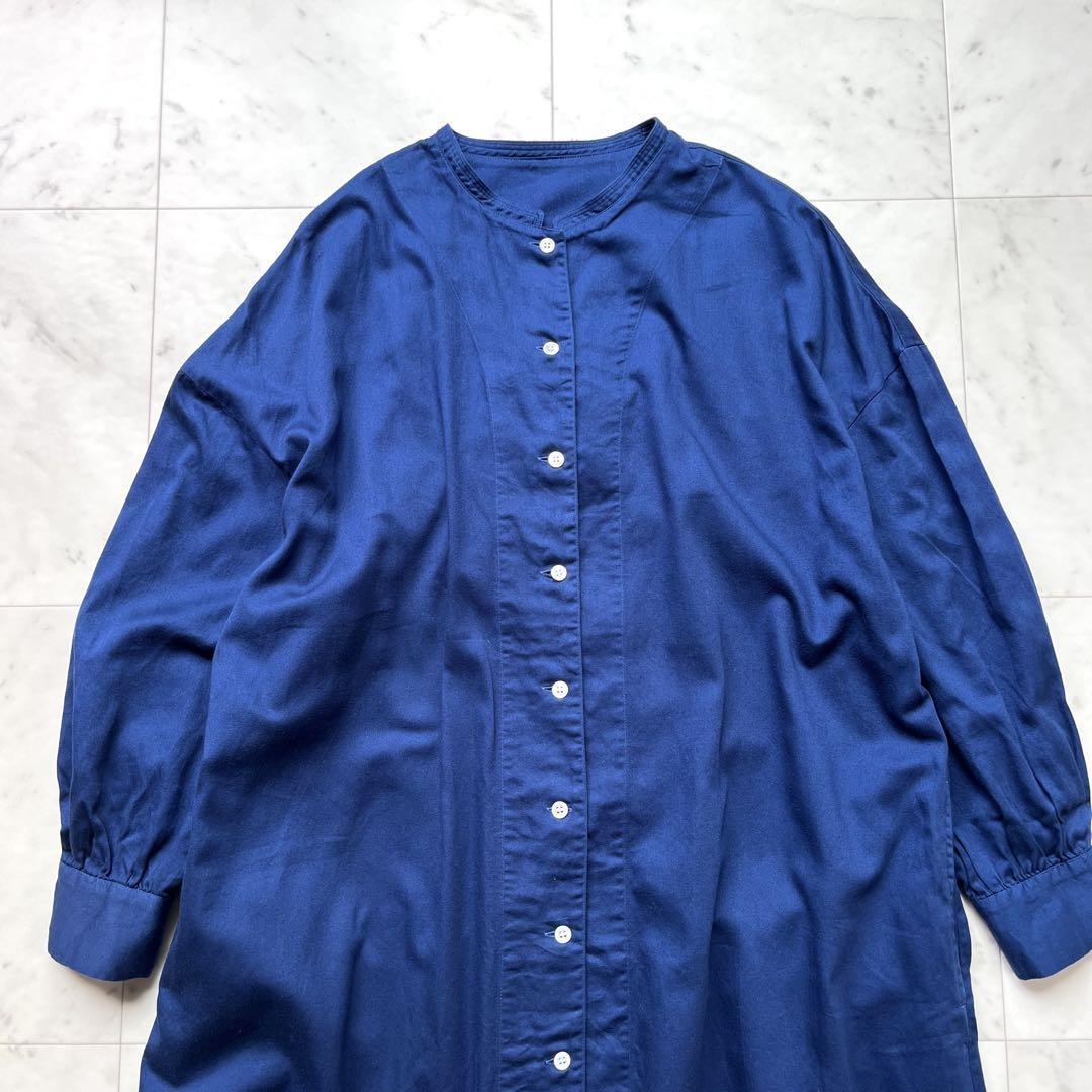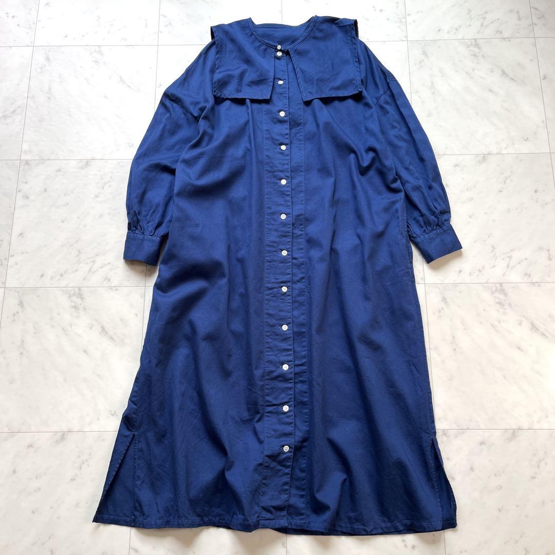 良品 haupia ハウピア 定価2.4万円 日本製 ロングワンピース シャツワンピース バンドカラー オーバーサイズ 付け襟 長袖 ネイビー 38 收藏