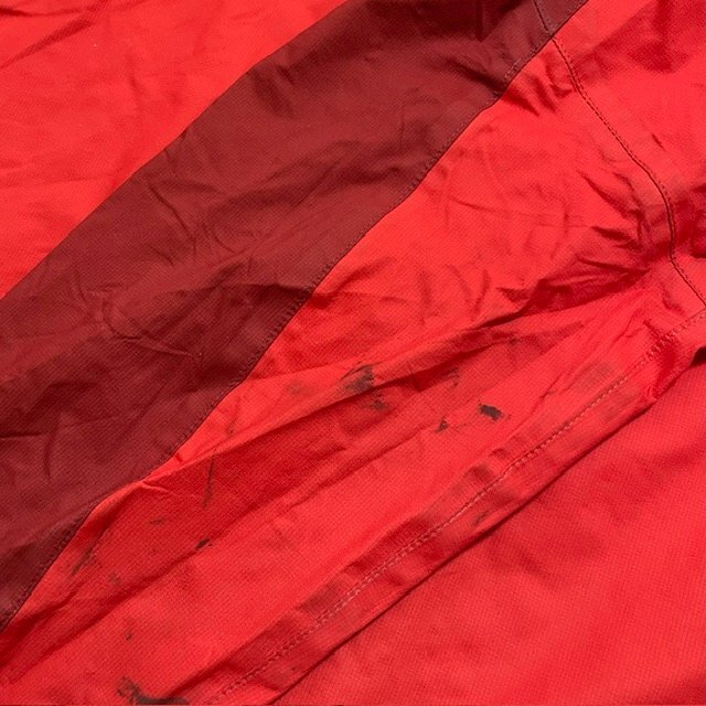 商品説明 しなやかさと軽さが特徴のレインスーツです。 レインウェアだけでなく、登山やトレッキングの時の軽量シェルとしても最適です。 詳細 ●サイズ:【Lサイズ】(ジャケット)裄丈78cm・バスト52cm・着丈63cm、(パンツ)ウエスト35.5cm・股下75cm(平置き採寸) ●カラー:レッド ●付属品:収納袋 ●ランク:Eランク ●コンディション:ジャケット内側の首回りに汚れがあります。 ジャケットの袖に汚れ、ほつれ、表面全体にも汚れがあります。 ジャケットの内側首周りのシームステープが剥がれています。 |