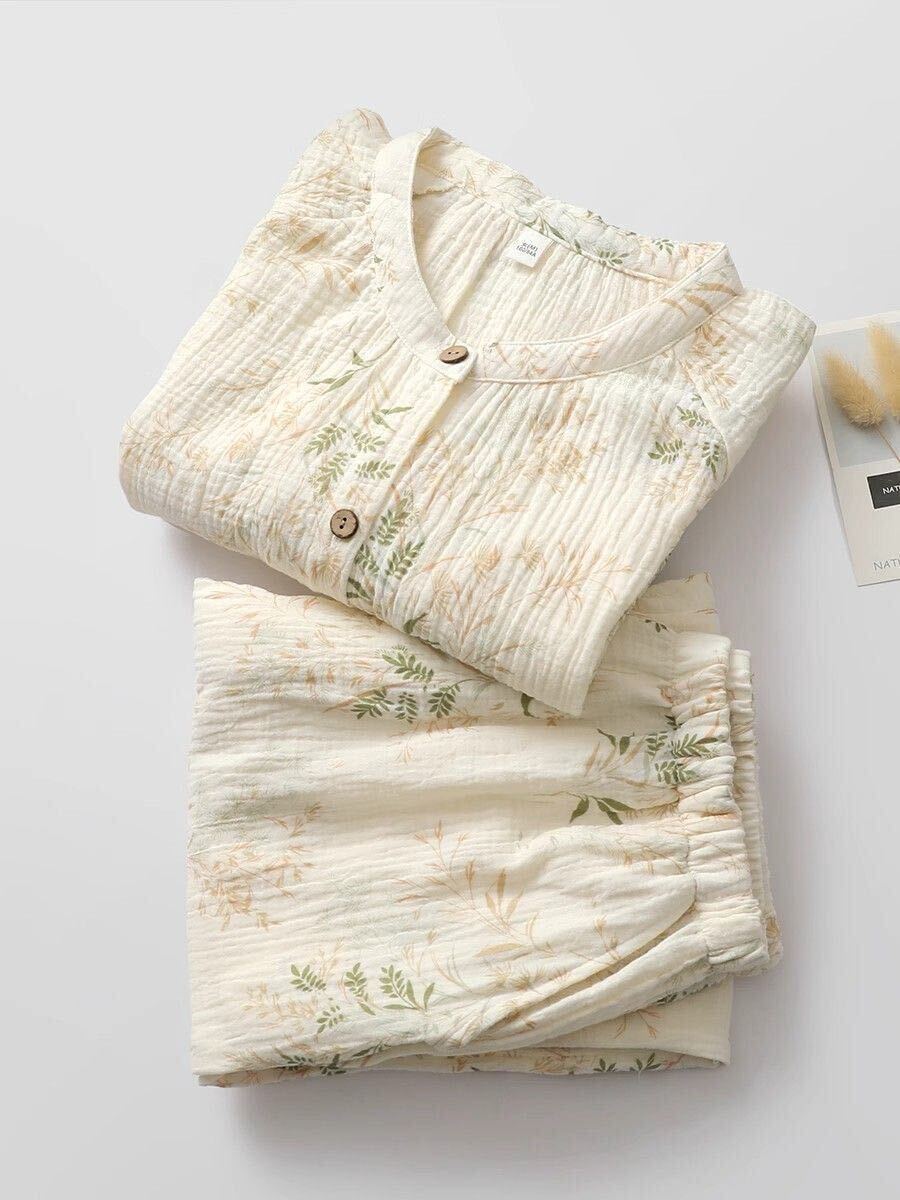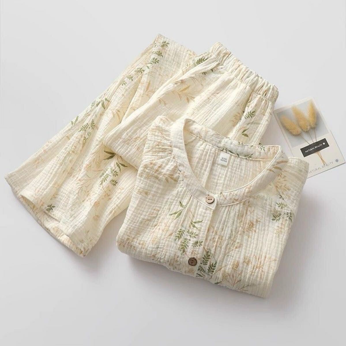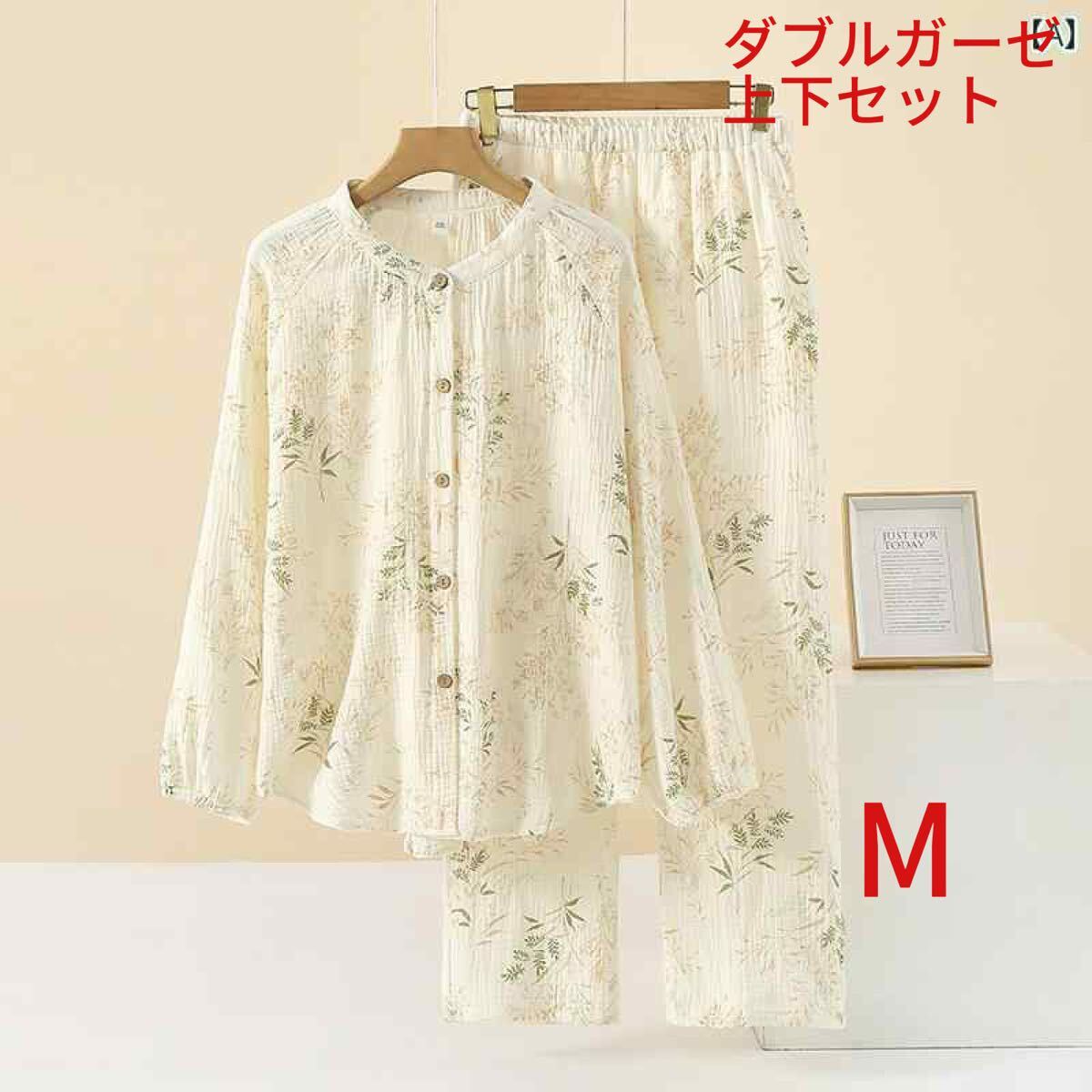 パジャマレディース M長袖長パンツ綿2重ガーゼ前開き柔らかい透気介護入院入所ルームウェア婦人大きめゆったり目 收藏