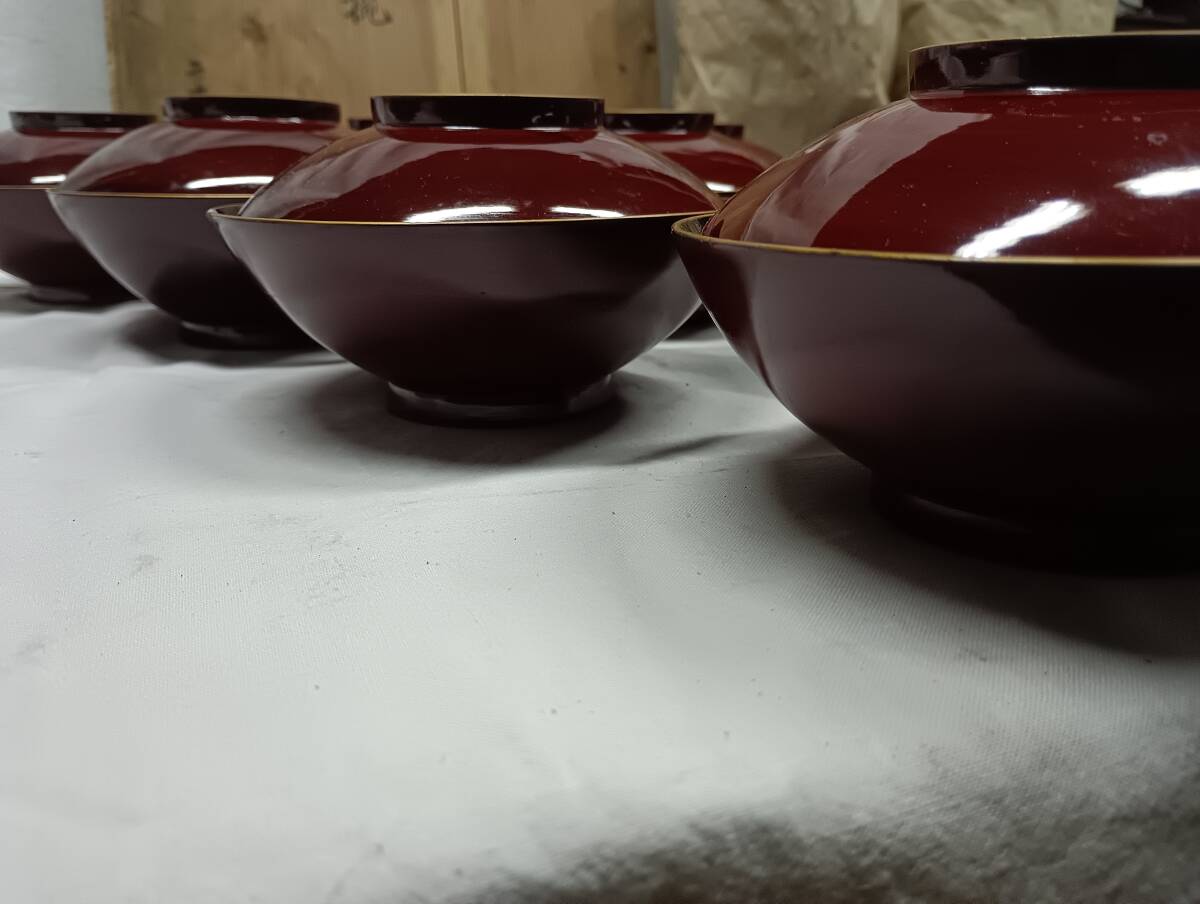| 出品物 煮物碗 20客 天然木漆塗金蒔絵亀柄 木箱入り |
