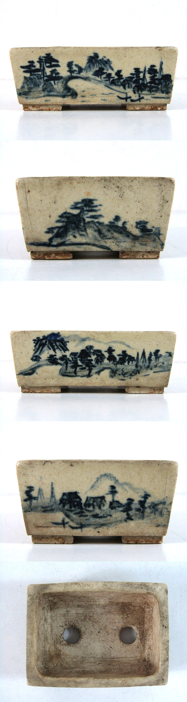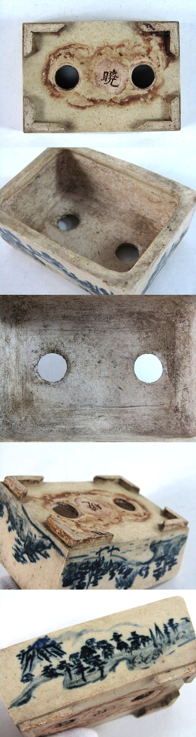 暁 染付 山水図 長方鉢 間口約5×7.1cm 小品盆栽鉢【説明欄に詳細写真有り】の出品です。