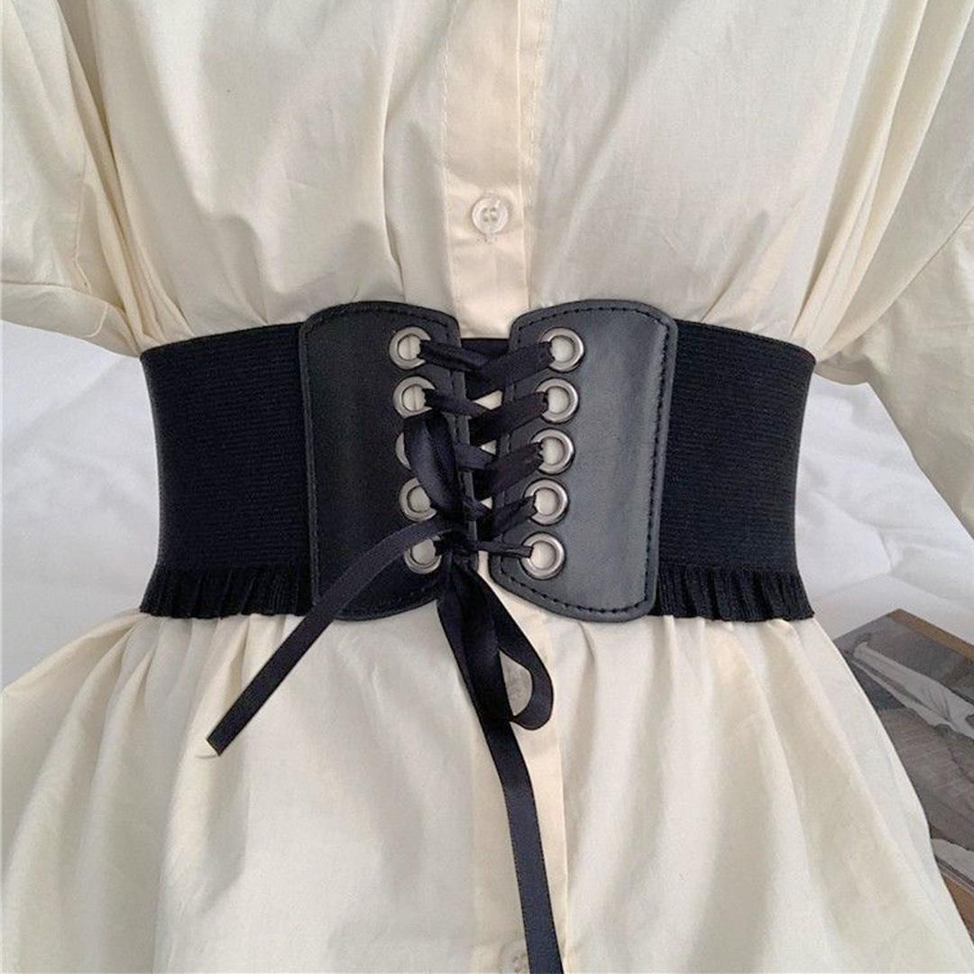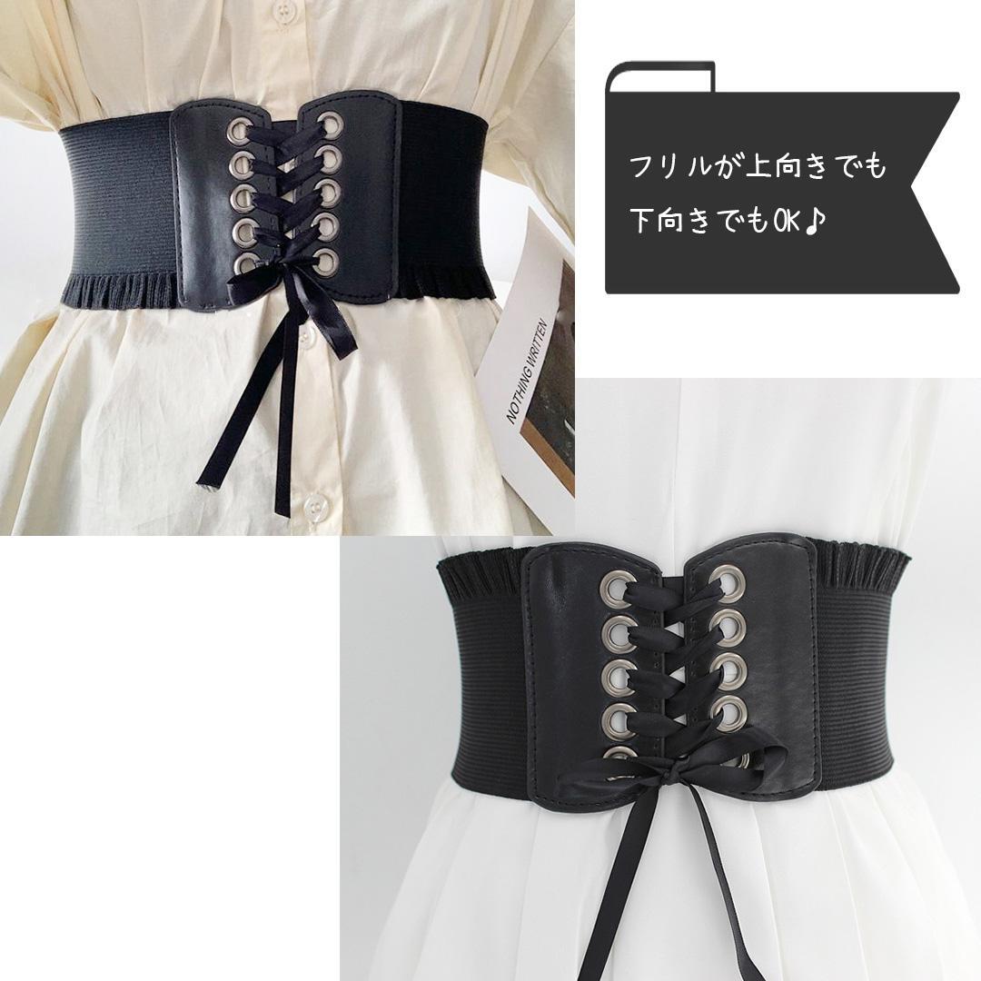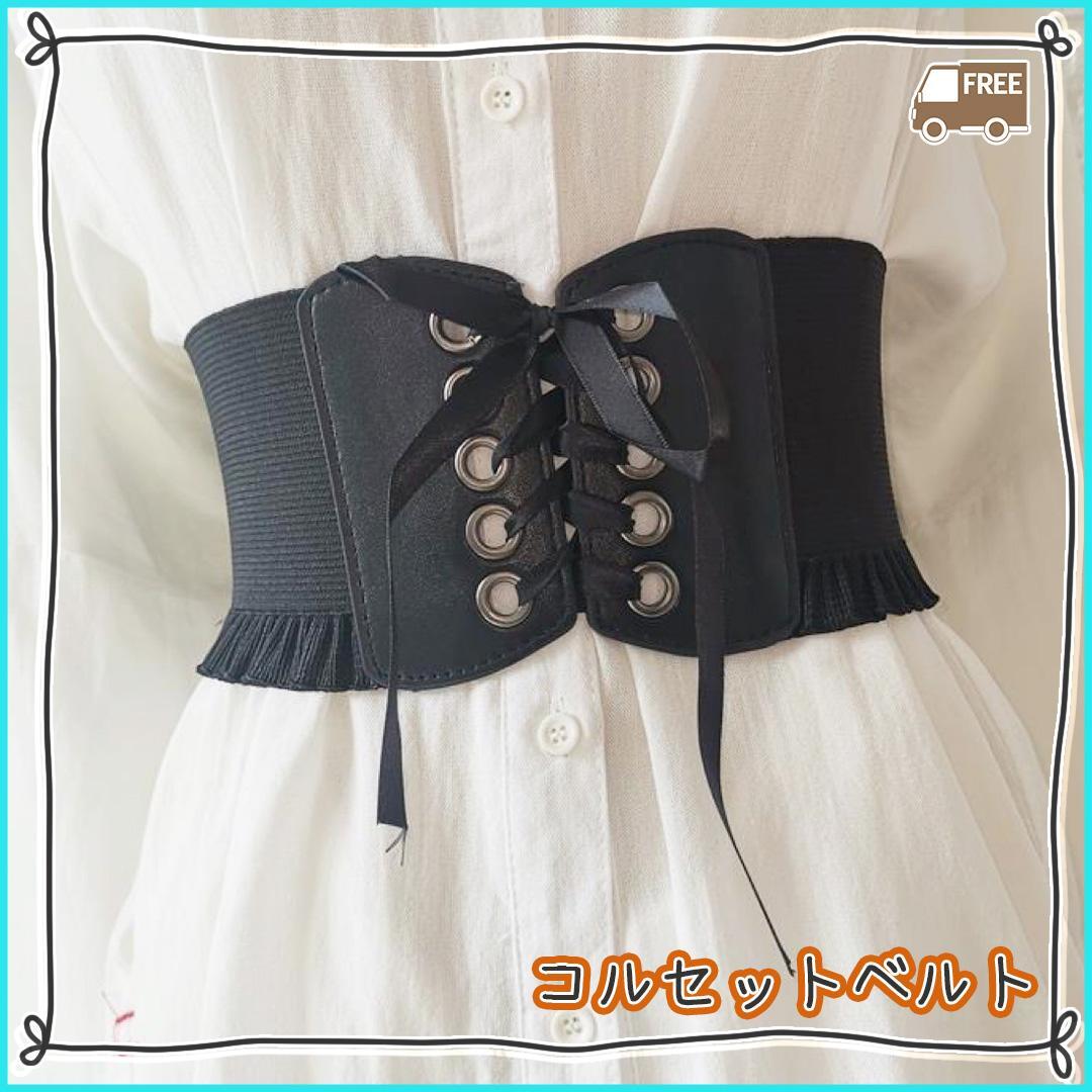 編み上げ コルセット風 黒 サッシュベルト ゴムベルト リボン ブラック 姫 收藏