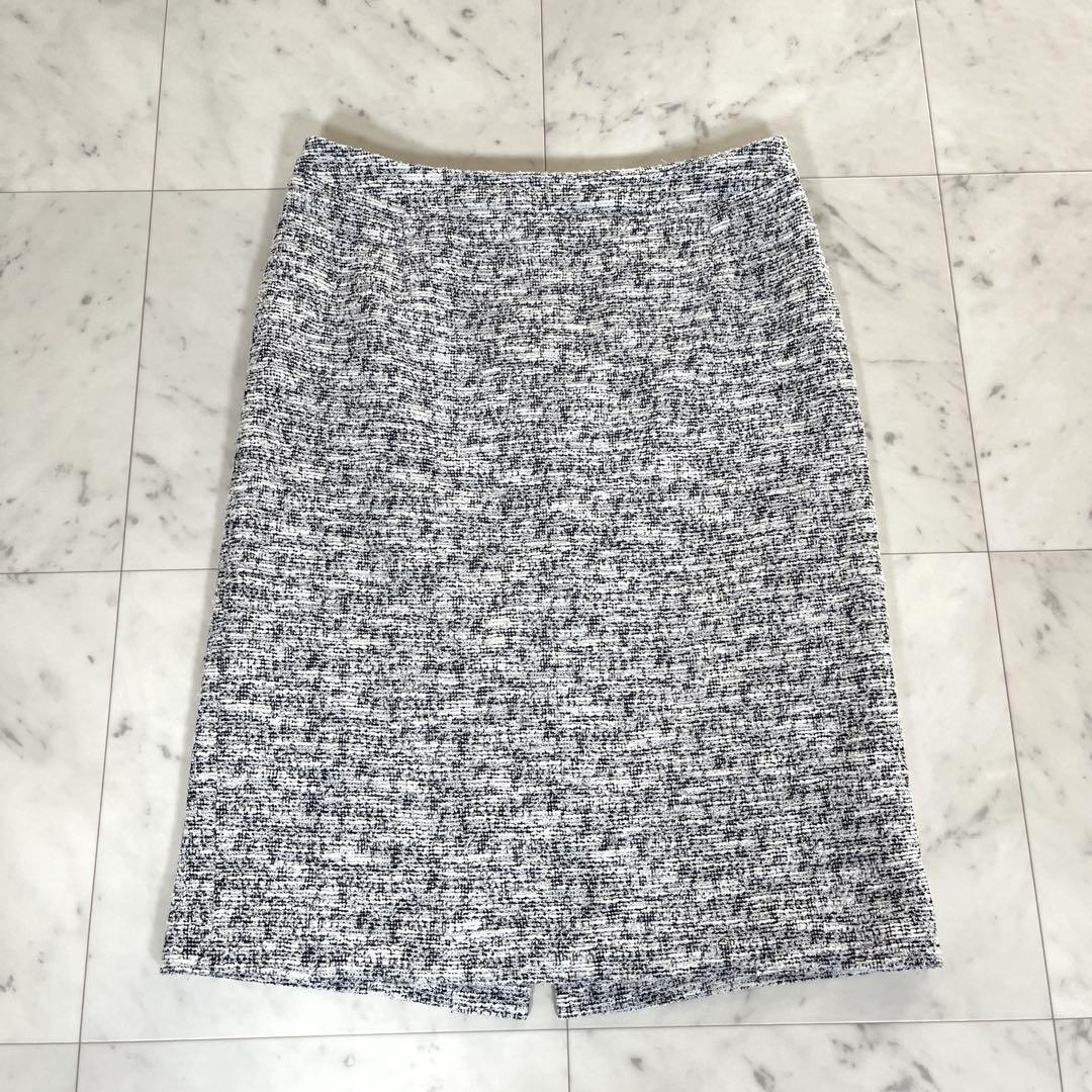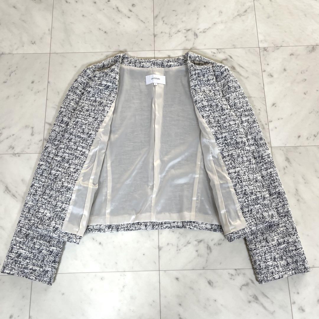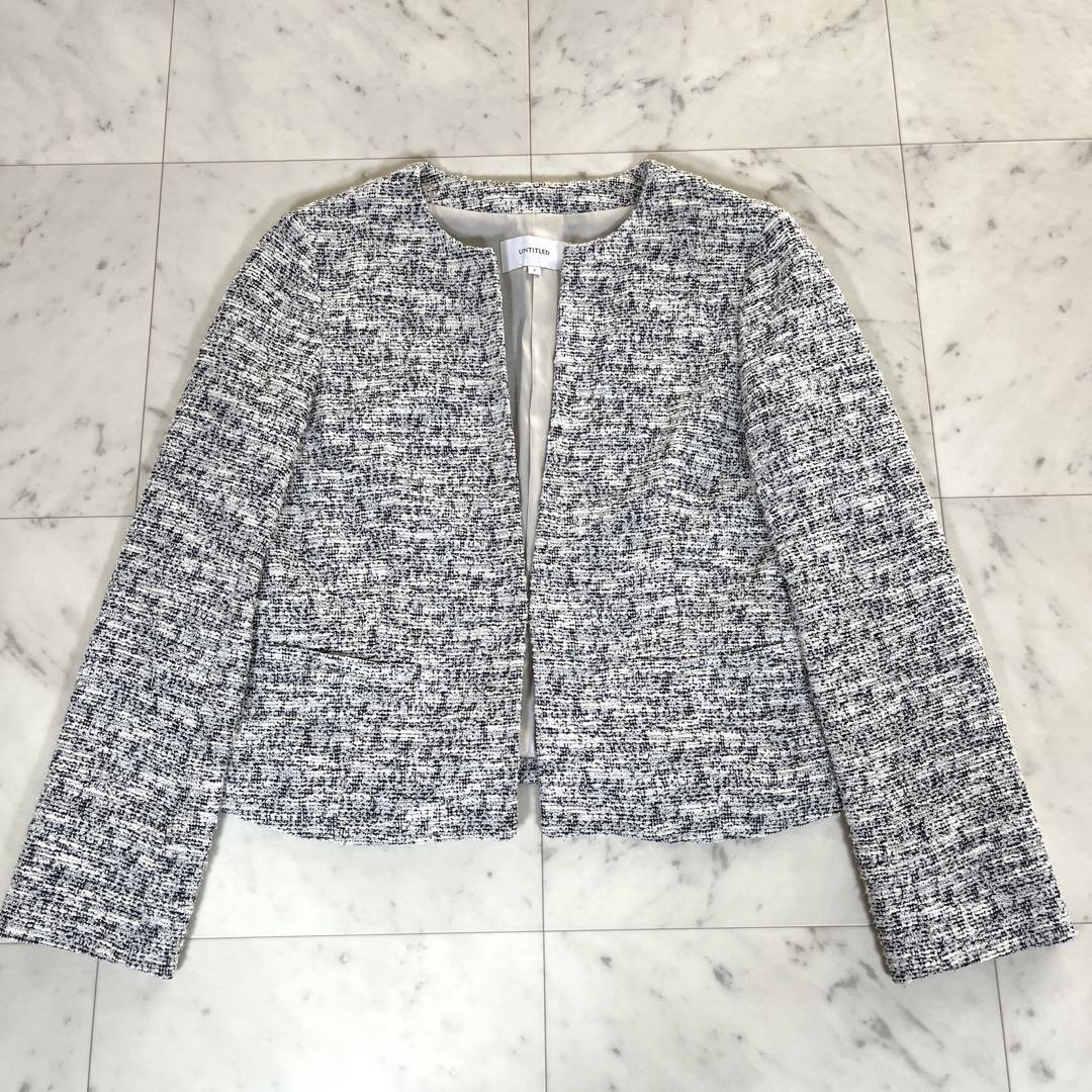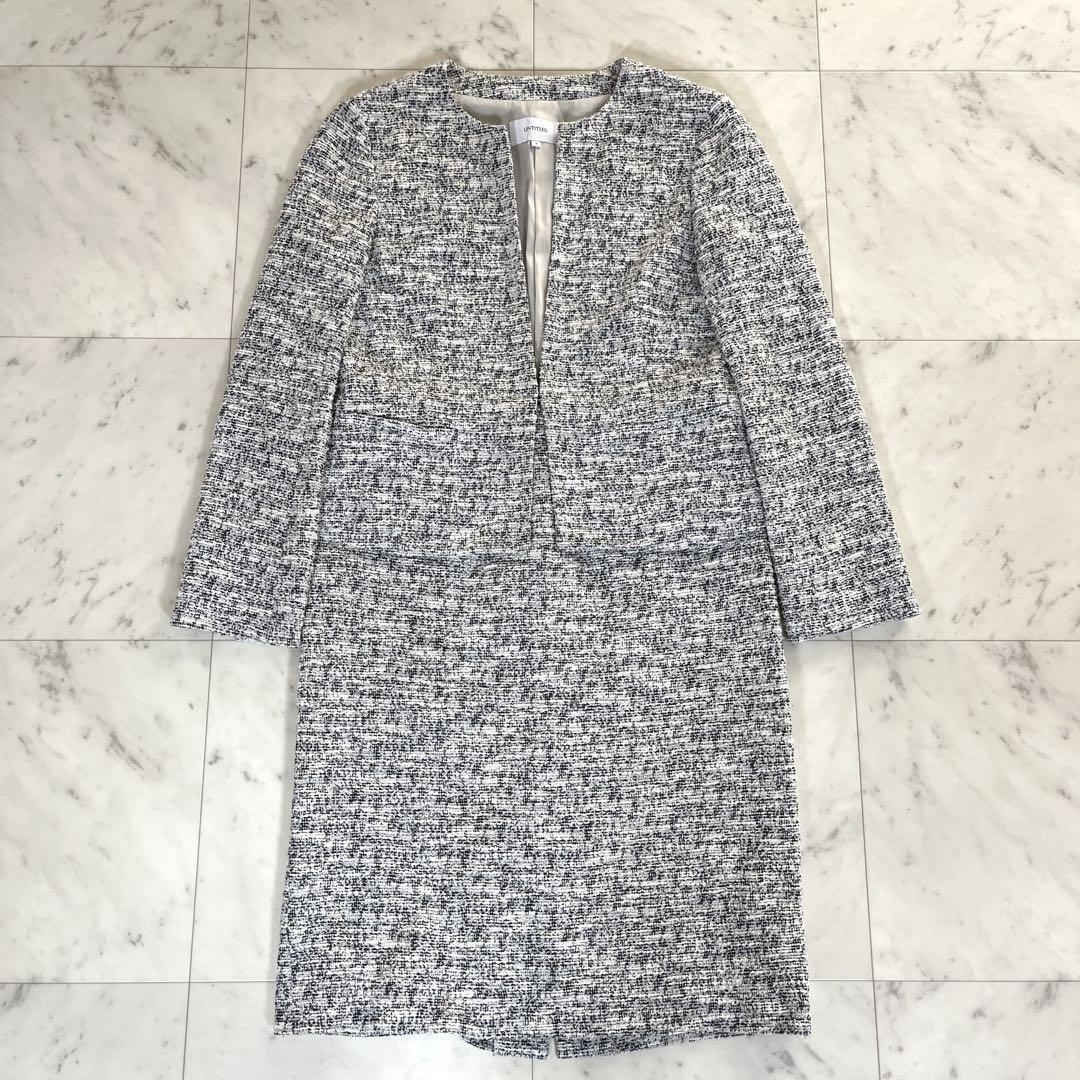洗える UNTITLED アンタイトル スーツ セットアップ ノーカラージャケット タイトスカート ツイード セレモニー 七五三 モノトーン 白 黒 收藏