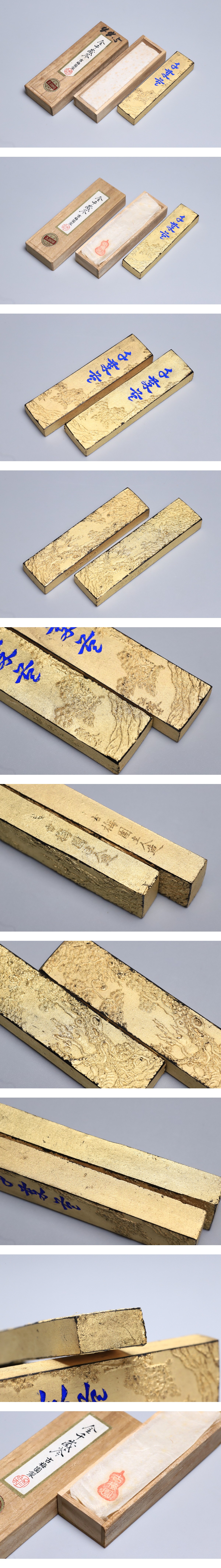 古墨 古梅園 金千歳苓 金巻 2本 68g 古梅園主人造 未使用 高級 和墨 書道/書道具/古美術/骨董品 L07846 收藏