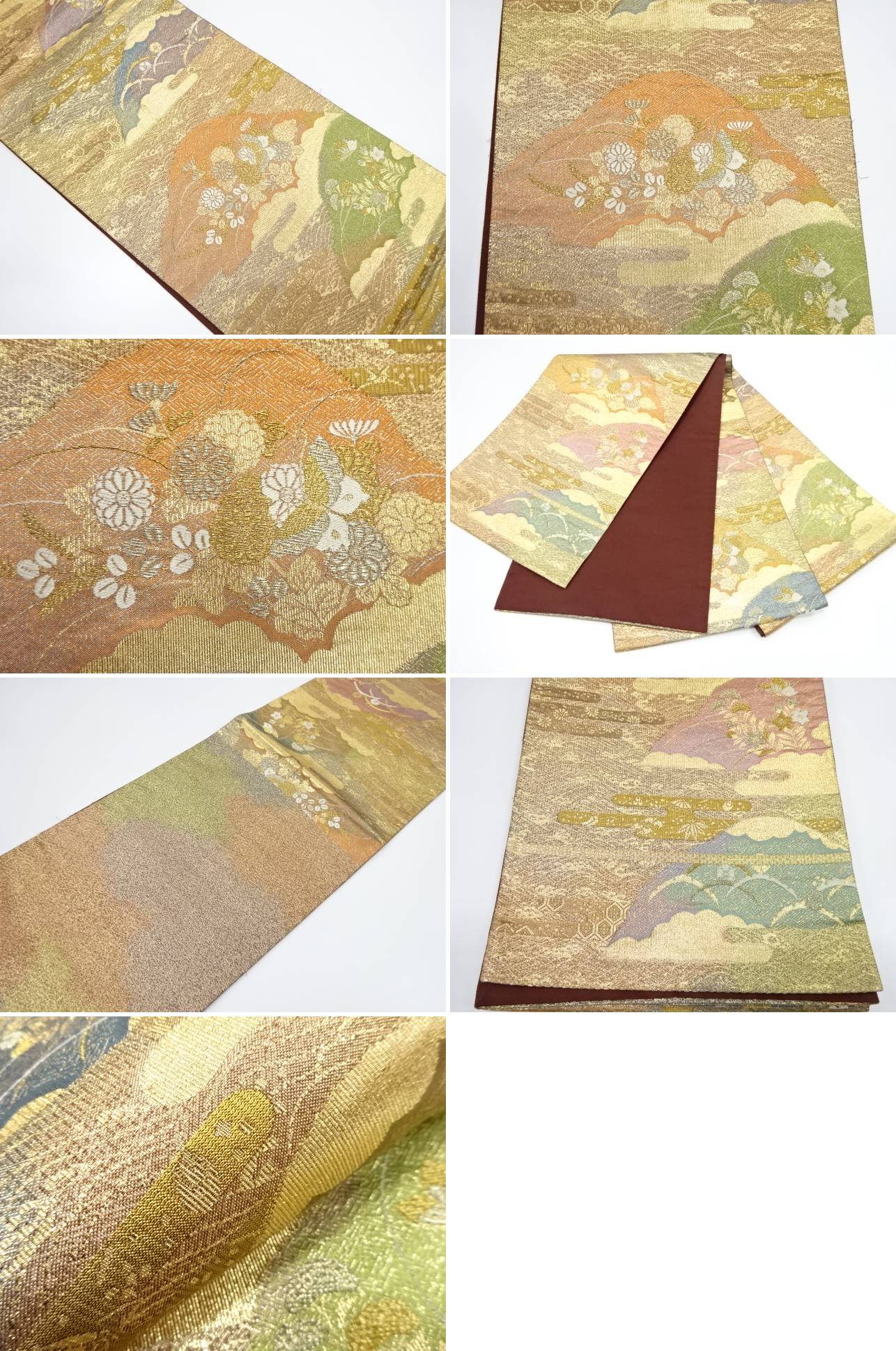 帯幅部分折れ山線に薄くすみが有ります。 状態は大変良いです。 着用可能です。 採寸・検品:木村、川上 撮影:木村 素材は正絹です。 地色は金です。 お支払い方法、送料・手数料はストア情報よりご確認お願いいたします。 全国一律1300円。11000円以上で送料無料 ※8/12より送料が変更されています。ご理解の上ご入札ください。 複数ご落札の場合で個別に発送住所がそれぞれ異なる場合は、お手数ですが、別途メールでご連絡下さい。 以前と発送先が異なる場合、別途メールでご連絡下さい。 多少の時代シミ、くすみがある場合があります。 デジタルカメラやモニターの特性により色が忠実に再現できない場合があります。 ご理解頂いた上でのご入札お待ちしております。 ご返品もお受け致しますが、送料、振り込み手数料は、お客様負担でお願いします。 |