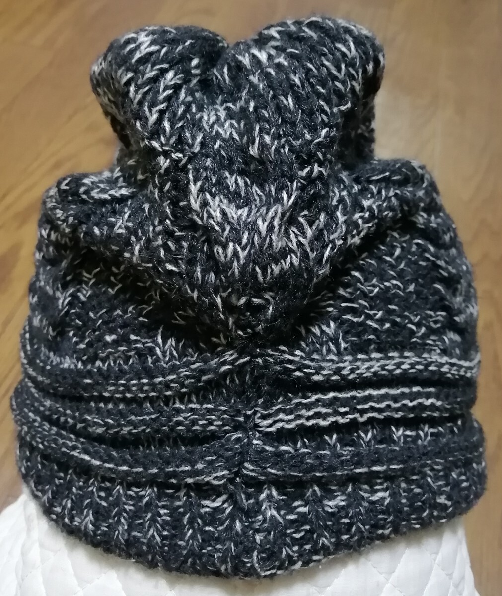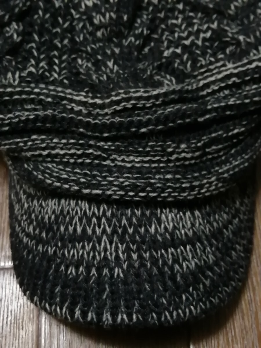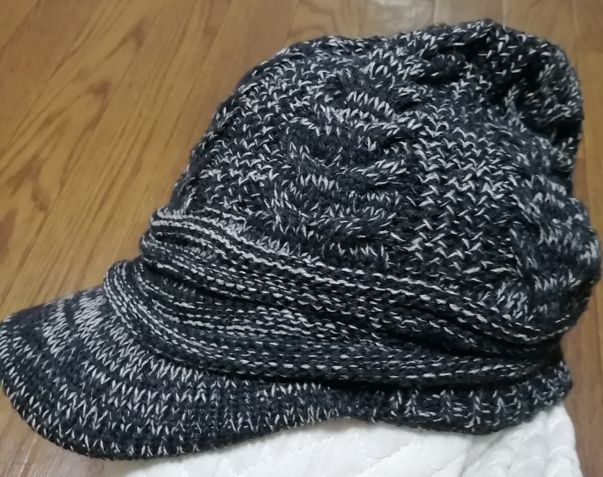 ニット帽 つば付 キャップ メンズ 伸縮性 深め 大きい 54~ 63 cm 2色ミックス ブラック/ オフホワイトニット帽子 つば付き 收藏