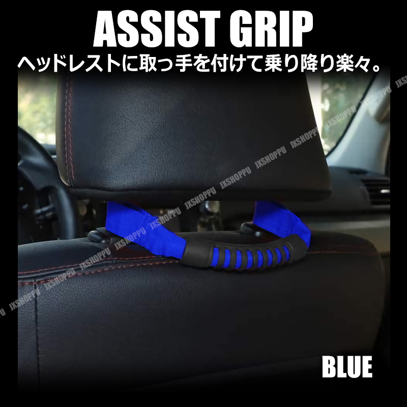 送料0円 ヘッドレストハンドル アシストグリップ [ブルー] 汎用 足腰の弱い方の車の乗り降り サポート 荷物かけに 手 アシストハンドル 收藏