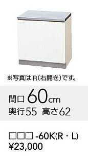 | ◎クリナップ・木キャビ・コンロ台『新クリンプレティ』特別価格 間口600mm・即決価格は、写真セット定価23.000円のなんと 47%OFFで13.409円【消費税込】 ◆エコノミーで最適なコンロ台です。高さ62cm・奥行55cm。 ◆扉の色は、ホワイト・ペールウッドから選択できます。 ◆写真の扉の色は、ホワイト。シンプルなキッチンに合う、やわらかな飽きのこない色です。 ◆ワークトップは、ステンレスです。 ◆コンロ台用バックガードは別途。 | |