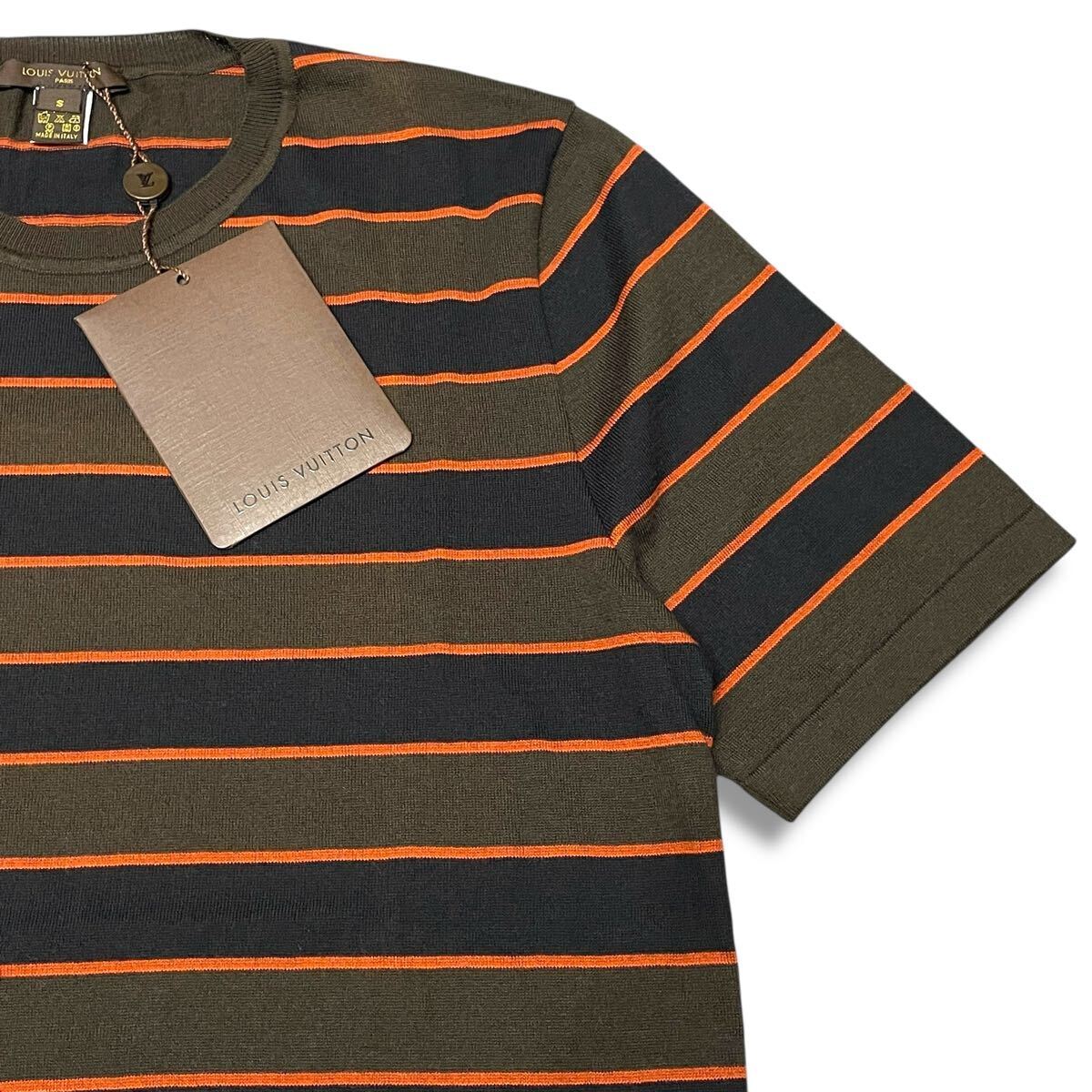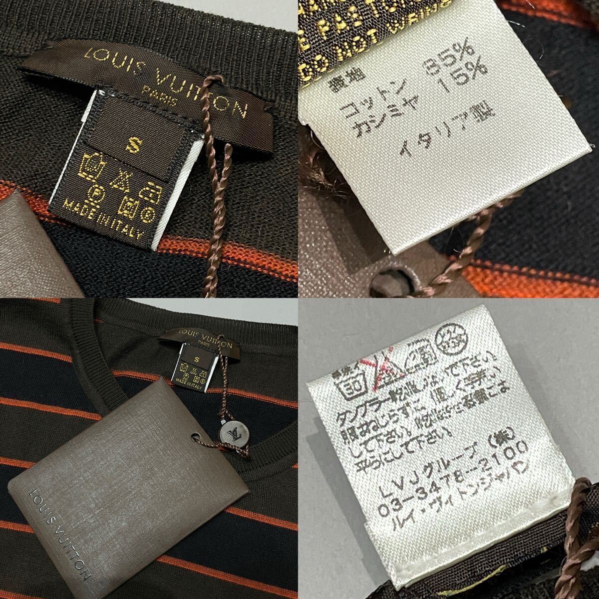 4 新品 未使用 国内正規品 LOUIS VUITTON ルイヴィトン カシミヤ混 マルチ ボーダー 半袖 ニット トップス ブラウン S イタリア製 メンズ 收藏