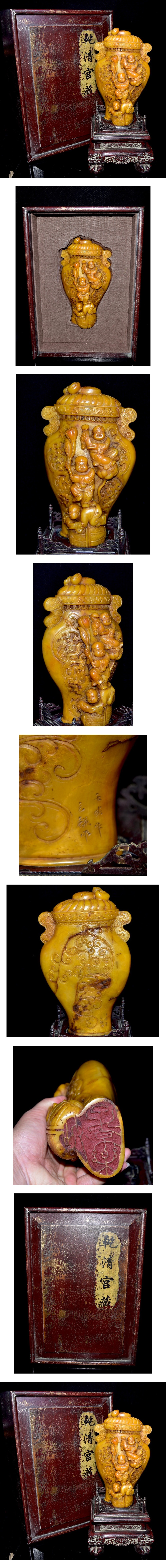◆珍蔵◆中国古美術 清時代 古寿山石 田黄石り童子戯図印章印章 箱付 細密細工造 置物 擺件 古賞物 骨董品 時代物 A17 收藏